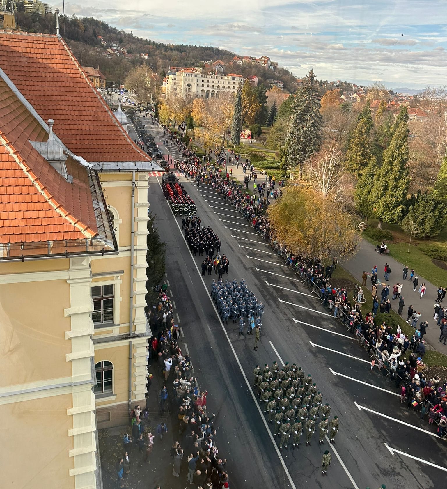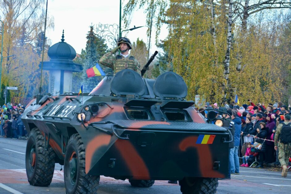 A urmat ceremonia militară şi religioasă organizată de Garnizoana Braşov şi Instituţia Prefectului, pe Bulevardul Eroilor – Piaţa Tricolorului, care a culminat cu defilarea a opt plutoane de militari din cadrul Ministerului Apărării Naţionale, Ministerului de Interne şi al celorlalte structuri speciale, urmată de cea a detaşamentelor de tehnică militară.