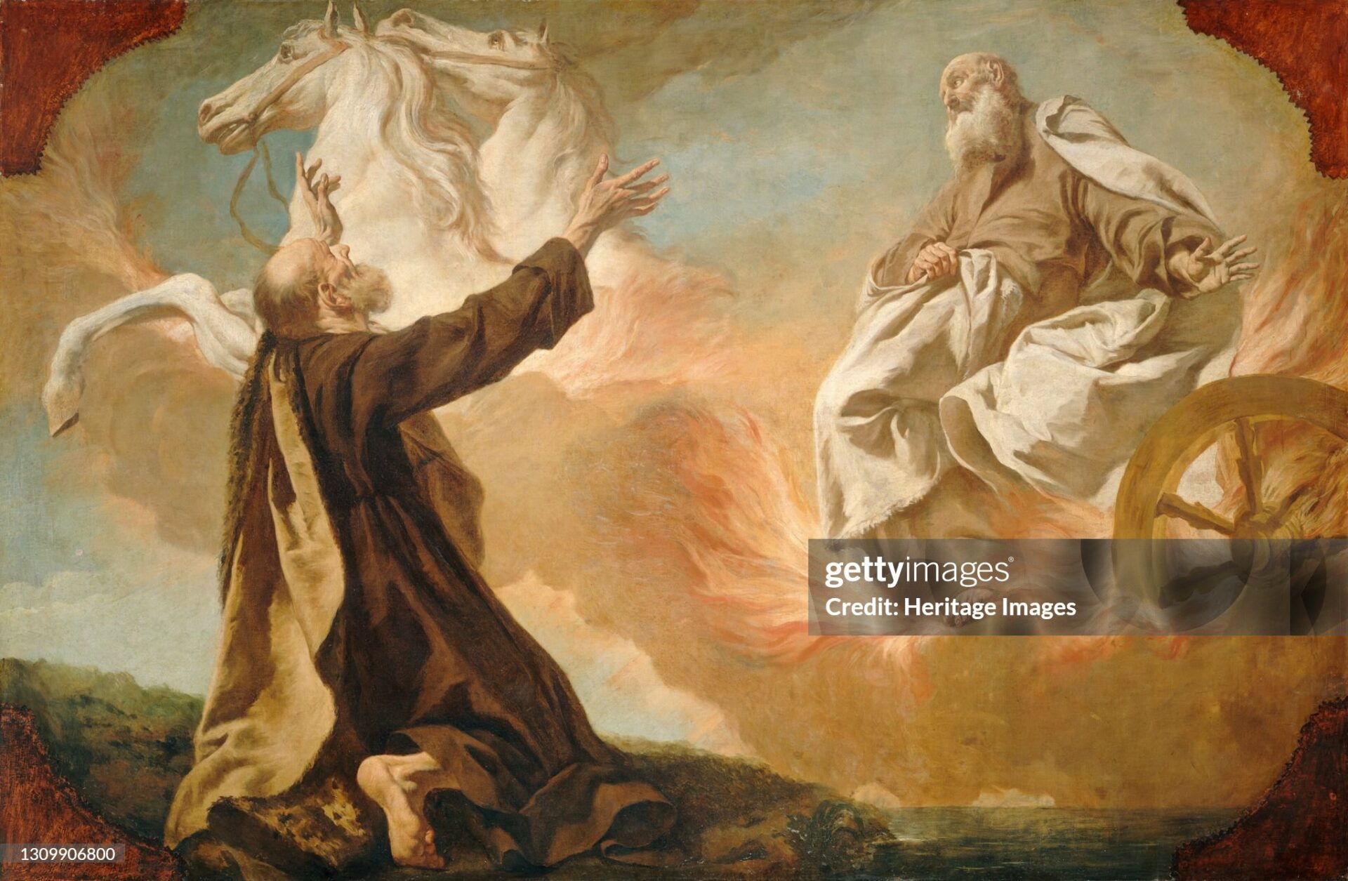 Elijah Taken Up in a Chariot of Fire, circa 1740/1755. Artist Giuseppe Angeli. (Photo by Heritage Art/Heritage Images via Getty Images).
