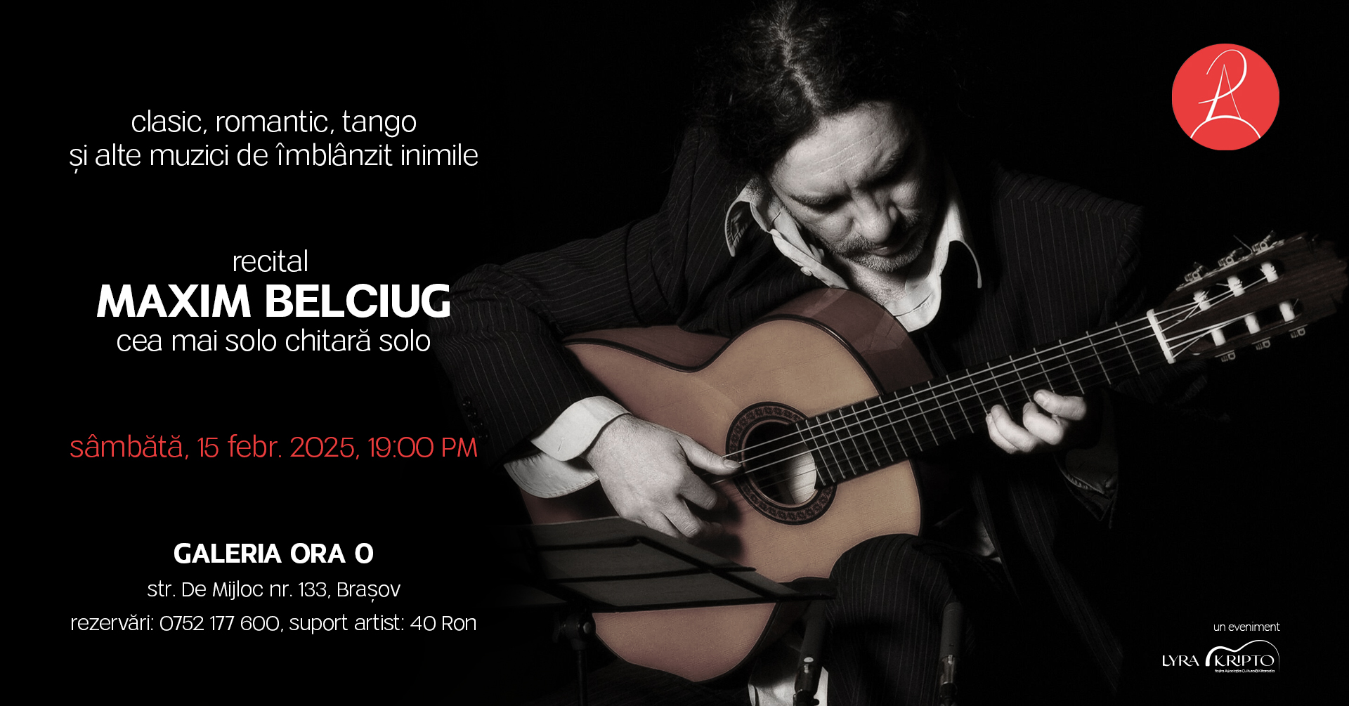 Sâmbătă, 15 februarie 2025, Galeria Ora 0 invită publicul la un eveniment special: senzaționalul chitarist Maxim Belciug, cel supranumit “cea mai solo chitară solo”, vine pentru prima dată în ultimul deceniu la Brașov pentru a oferi un concert extraordinar de chitară în spațiul colorat și primitor din str. De Mijloc 133. Organizat în siajul Zilei […]