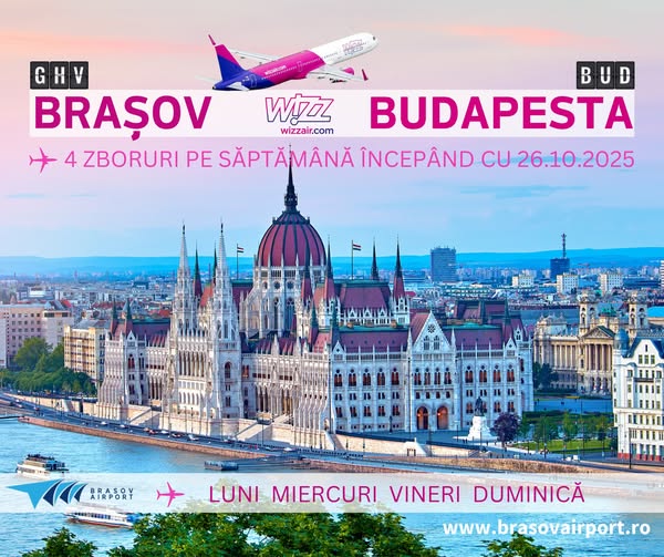 Wizz Air va crește frecvența zborurilor pe ruta Brașov – Budapesta la patru pe săptămână, începând cu 26 octombrie 2025. Astfel, pe lângă zborurile din zilele de luni, miercuri și vineri, va fi introdusă și o cursă duminica. Ruta leagă Aeroportul Internațional Brașov de Budapest Airport, oferind mai multe opțiuni de călătorie pasagerilor din centrul […]