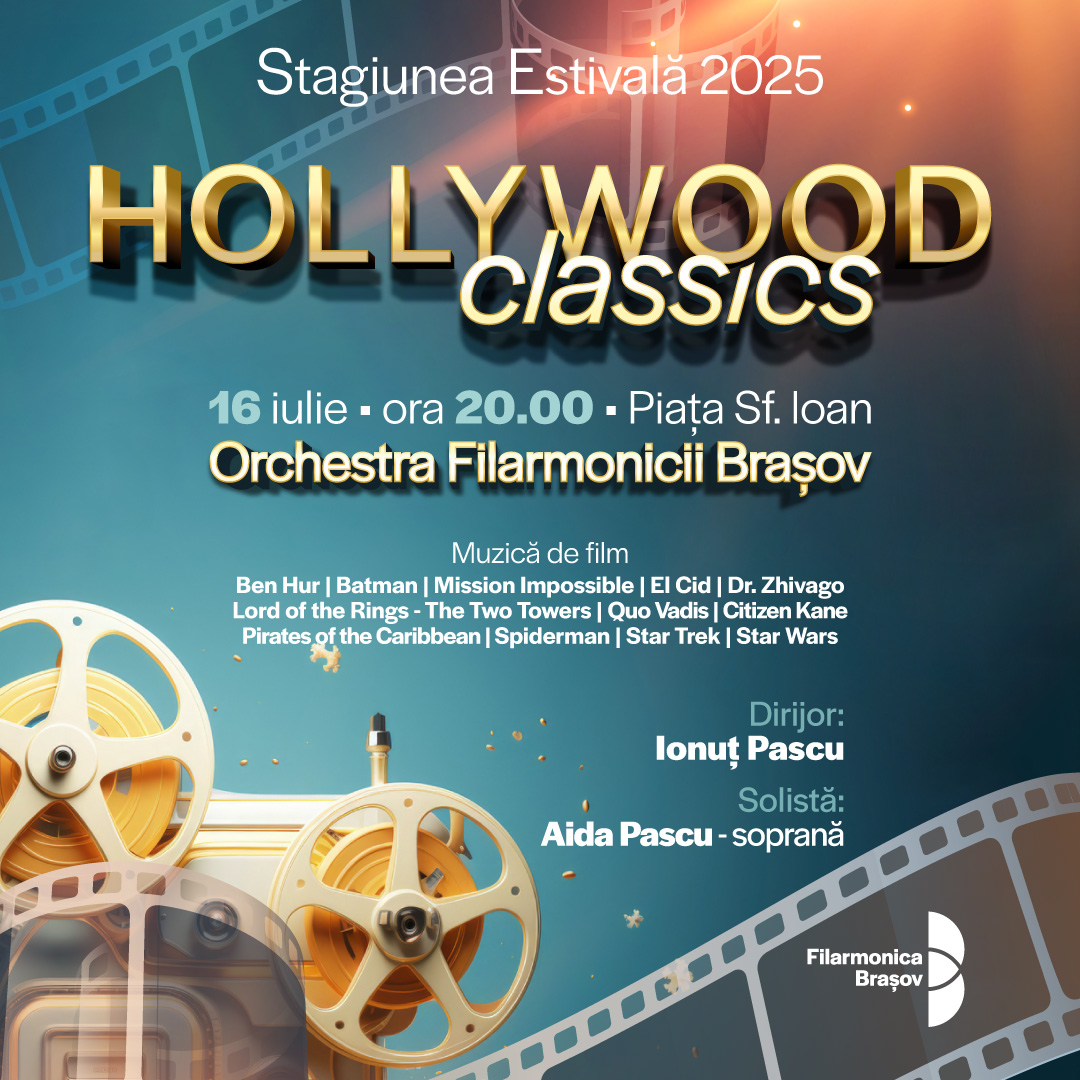 Miercuri seară, pe 16 iulie, Piața Sf. Ioan se transformă într-un decor de poveste hollywoodiană! De la ora 20:00, publicul este invitat la Concertul simfonic „Hollywood Classics”, susținut de Orchestra Filarmonicii Brașov, sub bagheta dirijorului Ionuț Pascu, cu participarea sopranei Aida Pascu. Veți putea asculta muzică din filme legendare precum Ben Hur, Batman, Star Wars, […]