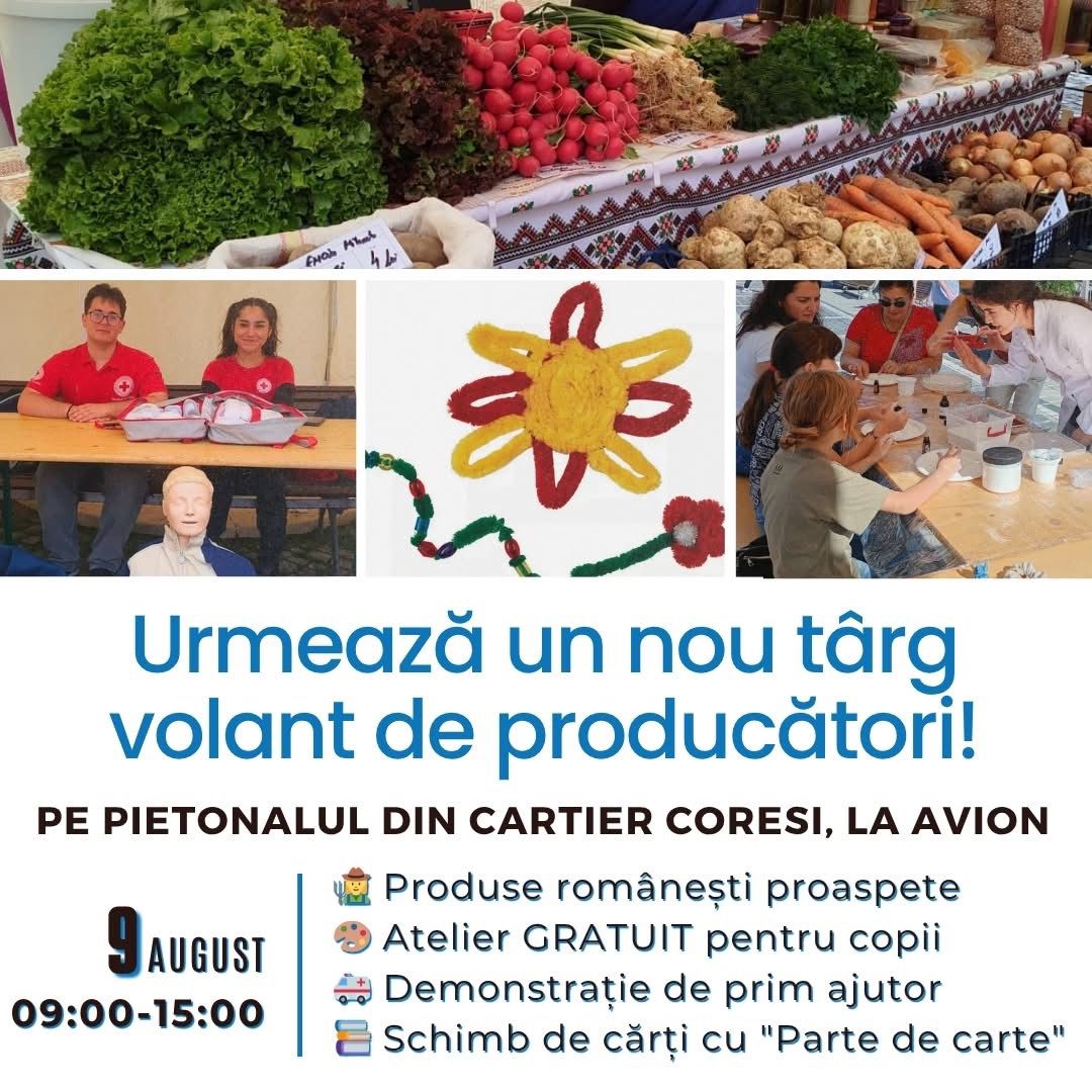 Sâmbătă, 9 august, cartierul Coresi din Brașov devine locul ideal pentru o ieșire în aer liber, cu gust, creativitate și implicare comunitară. În intervalul 10:00 – 15:00, pe pietonalul de lângă avion, se va desfășura Târgul volant de producători, un eveniment dedicat produselor locale și activităților pentru întreaga familie. Legume și fructe de sezon, brânzeturi, […]