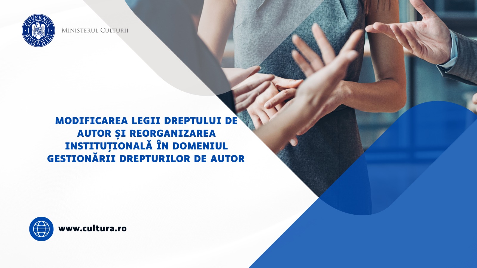 Ministerul Culturii lansează în consultare publică proiectul de Ordonanță a Guvernului pentru modificarea și completarea Legii nr. 8/1996 privind dreptul de autor și drepturile conexe, precum și pentru reorganizarea unor autorități publice din domeniul culturii. Inițiativa urmărește o adaptare clară și coerentă a legislației privind drepturile de autor. Legea, modificată de-a lungul timpului în mod […]