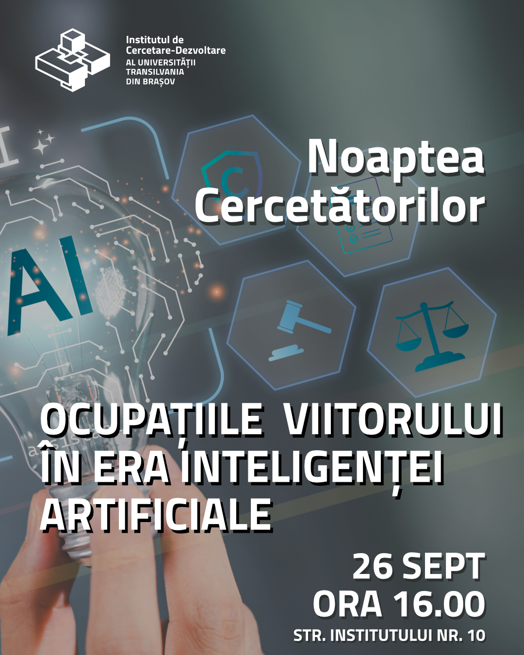 Universitatea Transilvania din Brașov vă așteaptă vineri, 26 septembrie 2025, între orele 16:00 și 21:00, la Institutul de Cercetare-Dezvoltare (strada Institutului nr. 10), pentru o nouă ediție a evenimentului Noaptea Cercetătorilor la Universitatea Transilvania din Brașov, un eveniment care transformă cercetarea într-o experiență captivantă pentru toate vârstele. Sub tematica „Ocupațiile viitorului în epoca inteligenței artificiale”, vizitatorii […]