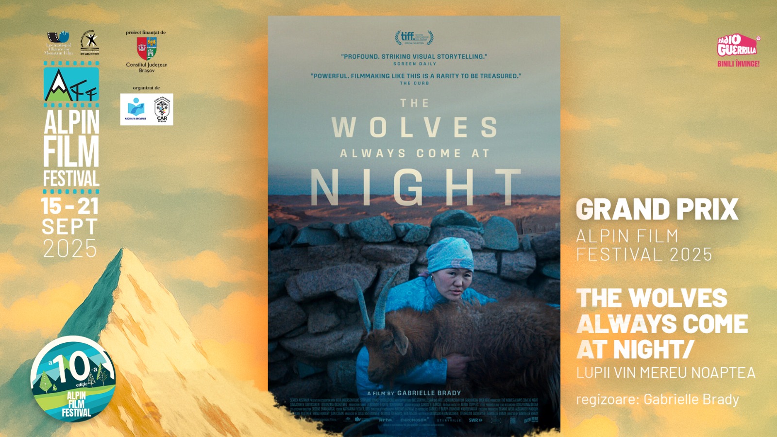 Ediția aniversară a Alpin Film Festival 2025, care s-a încheiat duminică, 21 septembrie, la Brașov, și-a desemnat câștigătorii. Marele premiu al competiției internaționale a fost câștigat de „The Wolves Always Come at Night / Lupii vin mereu noaptea”, regizat de Gabrielle Brady, un documentar hibrid care surprinde cu delicatețe și profunzime efectele schimbărilor climatice asupra […]