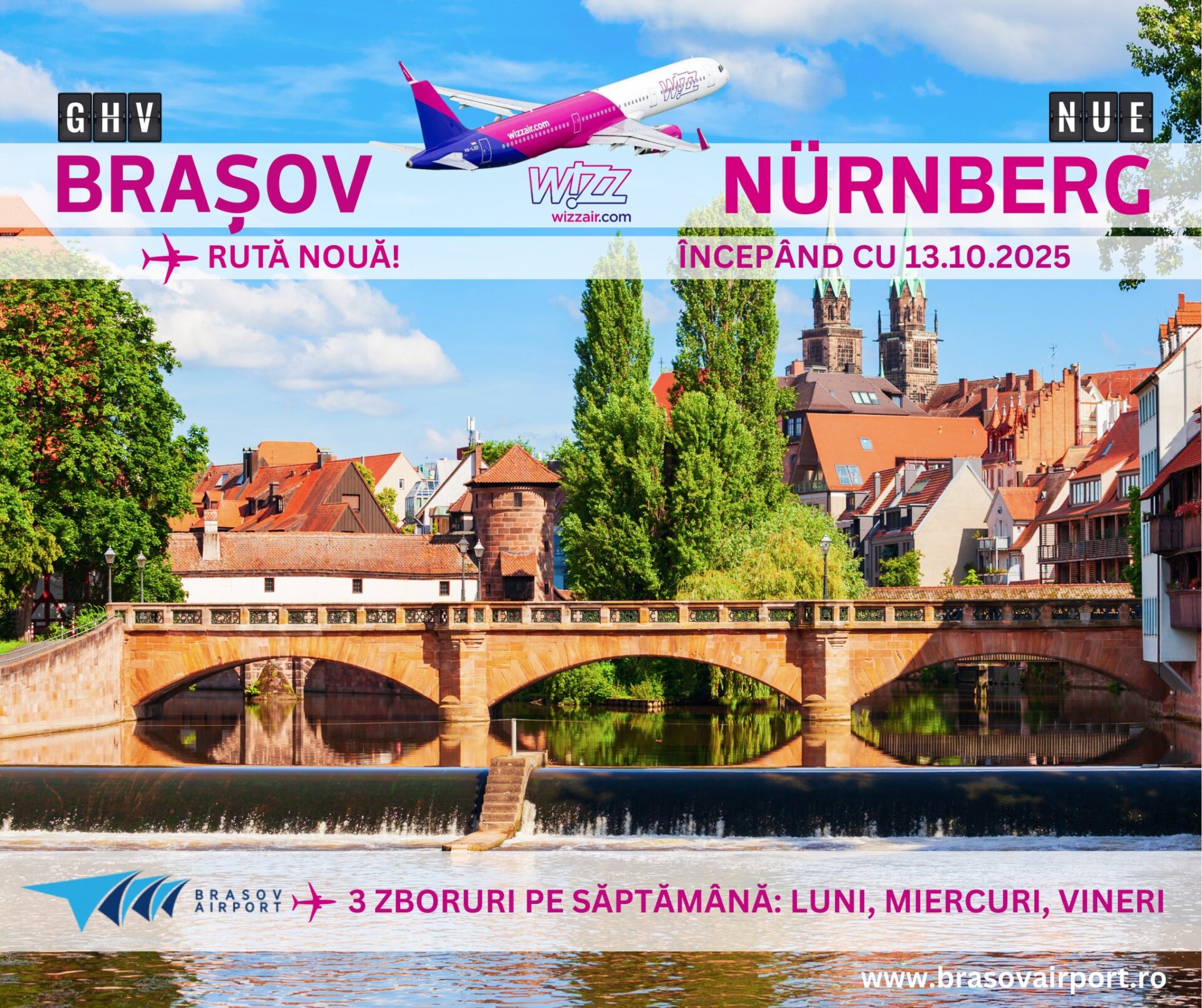Începând din 13 octombrie, Aeroportul Internațional Brașov – Ghimbav va găzdui din nou curse directe către și dinspre Nürnberg (NUE), operate de compania Wizz Air. Pasagerii din Brașov și întreaga regiune a centrului țării vor putea călători de trei ori pe săptămână – luni, miercuri și vineri – beneficiind astfel de o conexiune rapidă și […]