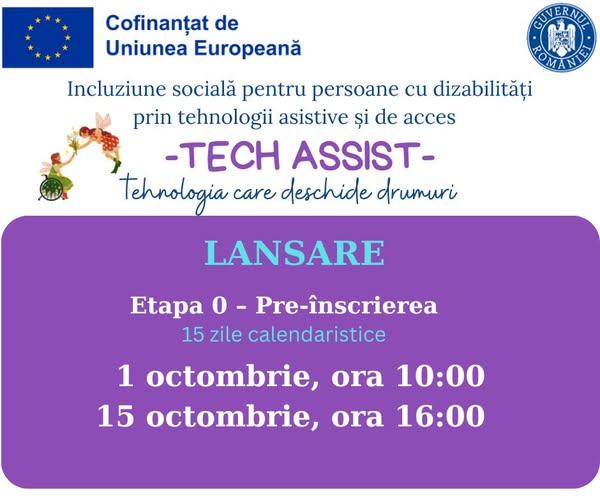 Autoritatea Națională pentru Protecția Drepturilor Persoanelor cu Dizabilități (ANPDPD) oferă sprijin copiilor cu dizabilități prin acordarea de e-vouchere pentru achiziționarea de tehnologii asistive și de acces. Această inițiativă face parte din proiectul „TECH-ASSIST” și are ca scop creșterea incluziunii sociale și a autonomiei copiilor. 1 Octombrie 2025, ora 10:00 începe etapa de preînscriere! Cine poate […]
