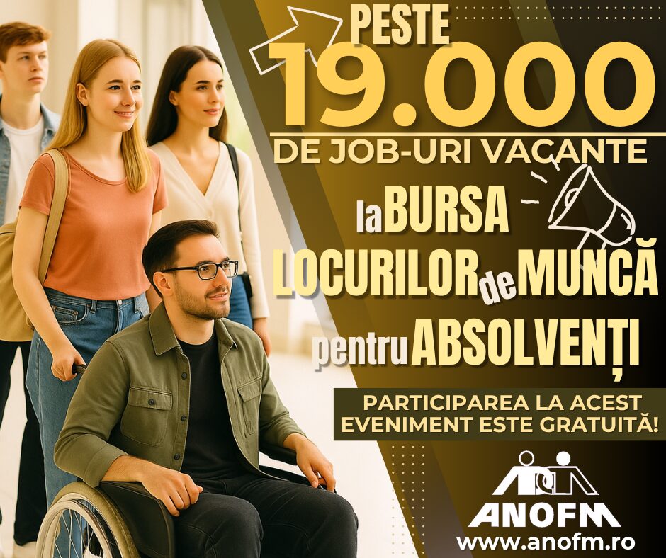 Bursa locurilor de muncă pentru absolvenți, organizată de Agenția Națională pentru OcupareaForței de Muncă, se va desfășura vineri, 10 octombrie 2025, în 63 de locații din țară și din București, lista acestora fiind disponibilă pe pagina web (www.anofm.ro) și pe pagina de facebook a instituţiei (https://www.facebook.com/fiiinformat). Până în acest moment, și-au anunțat prezența 1.068 de […]