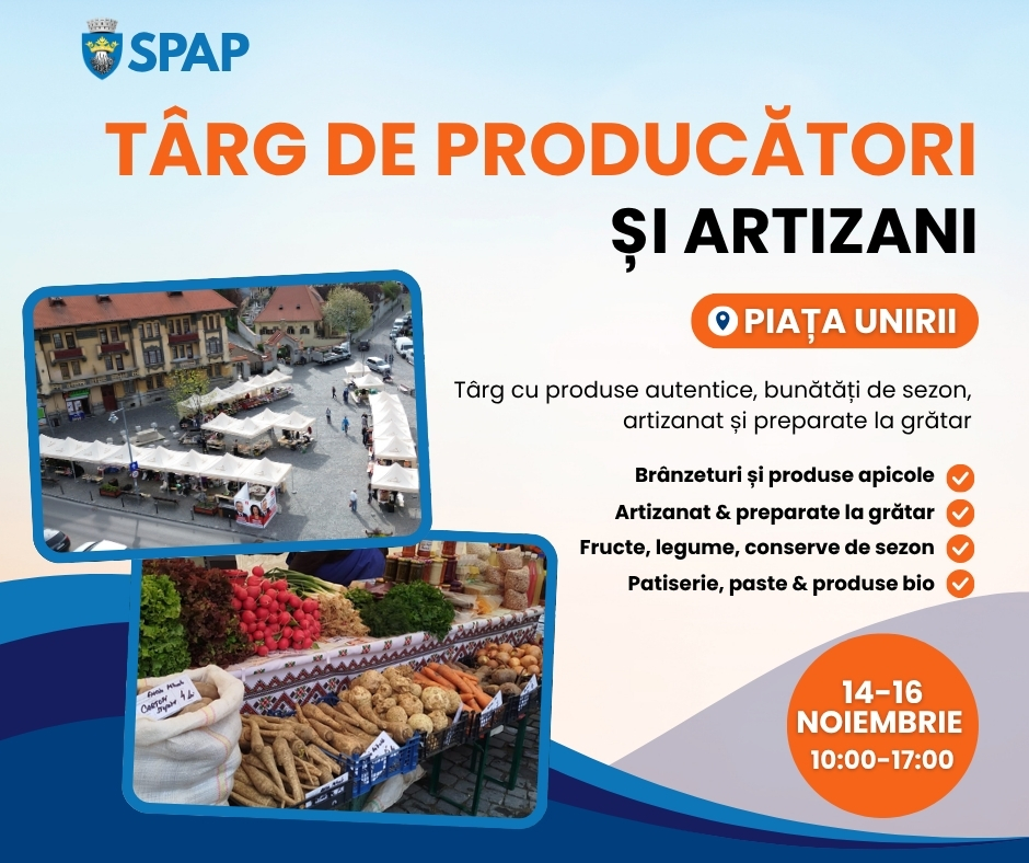Piața Unirii din Brașov se transformă din nou, în perioada 14–16 noiembrie 2025, într-un loc al tradițiilor autentice și al bucuriei simple de a descoperi produse românești de calitate. Târgul de producători și artizani revine cu o nouă ediție dedicată gusturilor locale, meșteșugurilor handmade și atmosferei de toamnă târzie pline de culoare. În fiecare zi, […]