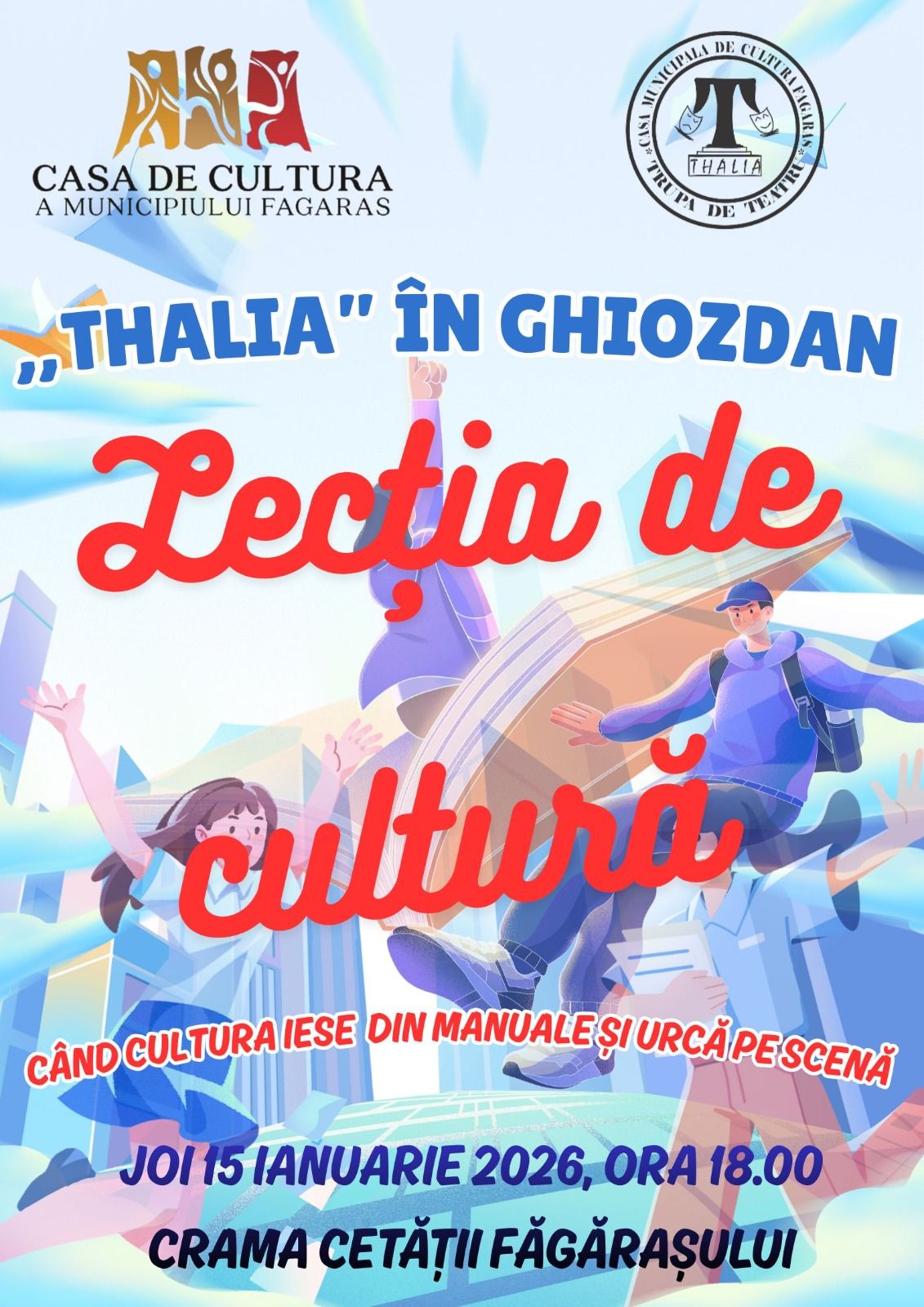 Astăzi, 15 ianuarie 2026, Cetatea Făgăraș devine gazda unei sărbători speciale dedicate culturii românești. Cu ocazia Zilei Culturii Naționale, trupa de teatru „Thalia” invită publicul la o lecție inedită de cultură, artă și tradiție, în atmosfera încărcată de istorie a Cramei Cetății. Evenimentul începe la ora 18:00, iar accesul este liber, oferind tuturor șansa de […]