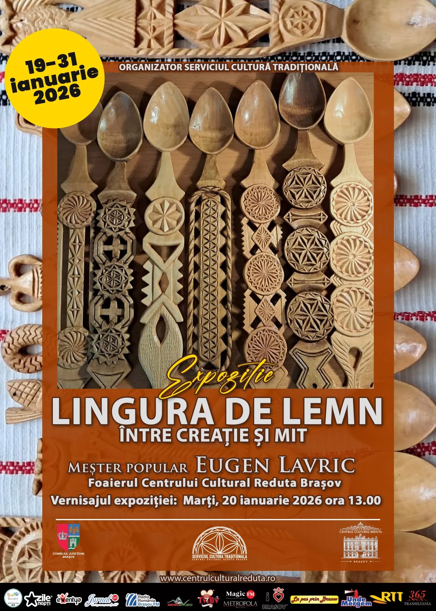 Centrul Cultural Reduta Brașov, prin Serviciul Cultură Tradițională, organizează expoziția de crestături în lemn a meșterului popular Eugen Lavric, intitulată „Lingura de lemn între creație și mit”. Expoziția poate fi vizitată în perioada 19-31 ianuarie, în foaierul Centrului Cultural Reduta și propune publicului o incursiune în universul meșteșugului tradițional, unde lingura de lemn devine obiect […]