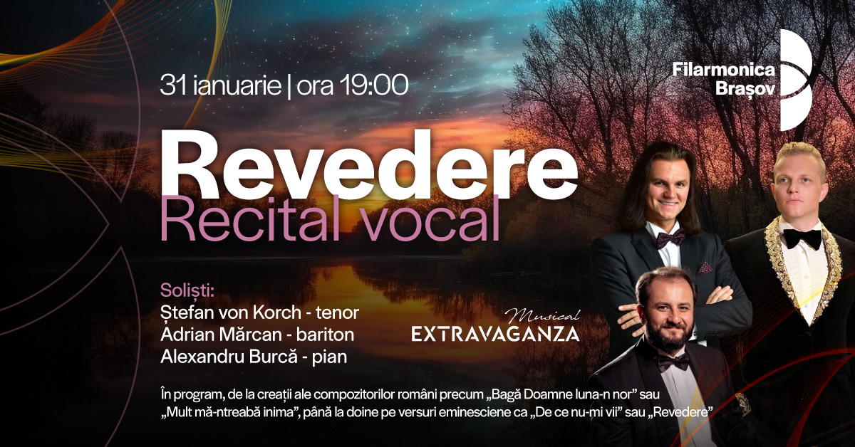 Pe 31 ianuarie, tenorul Ştefan von Korch revine la Filarmonica Braşov în recitalul „Revedere,” un program muzical ce pune în lumină creaţia eminesciană şi evocă cele mai profunde trăiri româneşti. Evenimentul este o tranziție muzicală de la creațiile de inspirație populară – cântece haiduceşti eroice şi doine duioase, pe versurile lui M. Eminescu, la arii […]