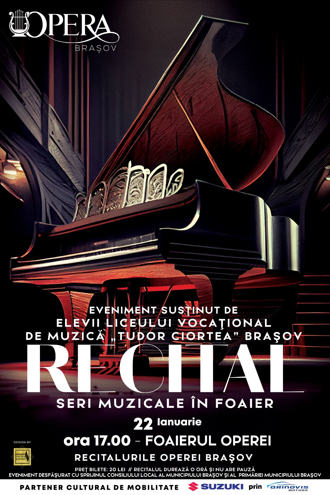 Joi, 22 ianuarie 2026, de la ora 17.00, în Foaierul Operei, publicul este invitat la Recitalurile Operei Brașov – Seri muzicale în foaier, un eveniment desfășurat, la această ediție, în parteneriat cu Liceul Vocațional de Muzică „Tudor Ciortea” Brașov. Vor interpreta elevii catedrei de canto clasic: Alexia Gavriliuc, Delia Grancea, Alesia Maria Codrea, Ervin Cârlan, […]