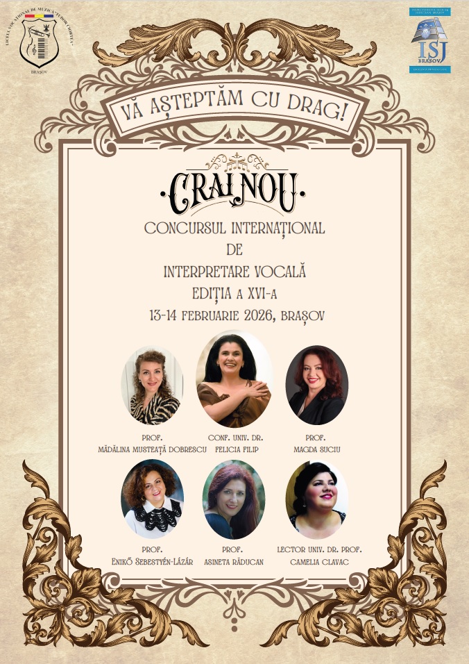 Brașovul devine, în perioada 13–14 februarie 2026, un important punct de întâlnire pentru tinerele talente ale artei vocale, odată cu desfășurarea Concursului Internațional de Interpretare Vocală „Crai Nou”, ajuns la ediția a XVI-a. Evenimentul va avea loc la Liceul Vocațional de Muzică „Tudor Ciortea” din Brașov și se adresează copiilor, tinerilor și tuturor pasionaților de […]