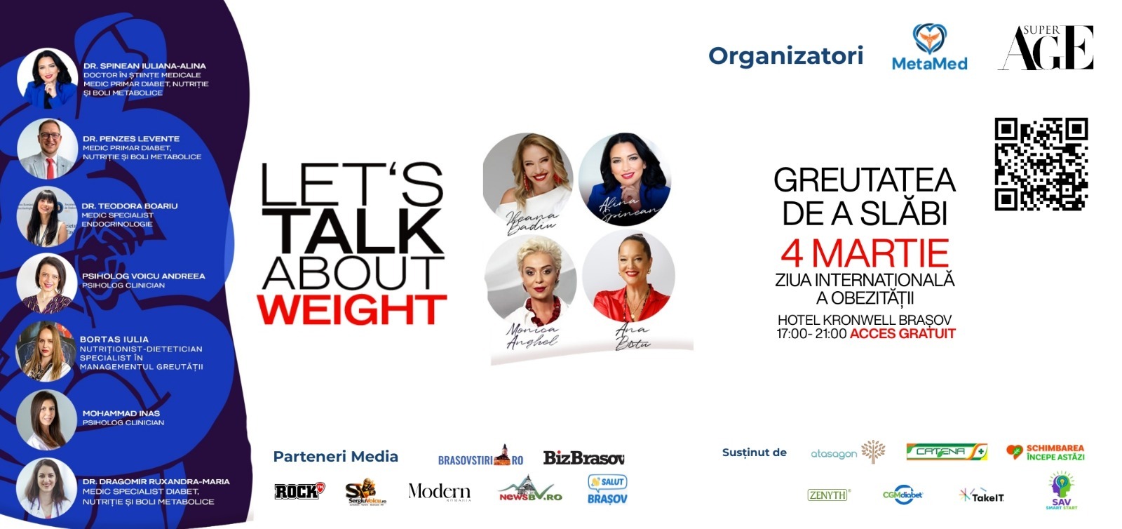 Brașovul găzduiește pe 4 martie 2026, la Hotel Kronwell, un eveniment care promite să schimbe modul în care este înțeleasă lupta cu kilogramele în plus și sănătatea metabolică. „LET’S TALK ABOUT WEIGHT – Greutatea de a slăbi” aduce în același spațiu medici, nutriționiști, psihologi și invitați speciali care vorbesc deschis despre cauzele reale ale creșterii […]