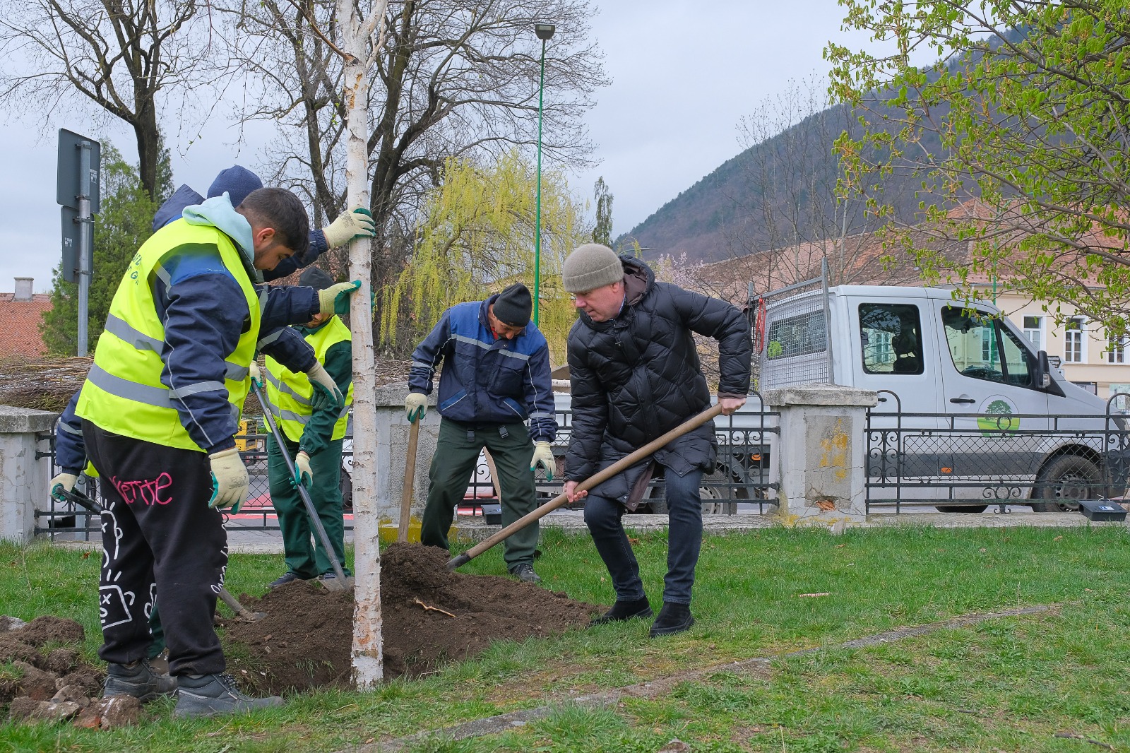 Primăria Brașov continuă acțiunile de plantare de arbori pe domeniul public, astăzi fiind rândul plantărilor din zona Colegiului Național „Andrei Șaguna”.