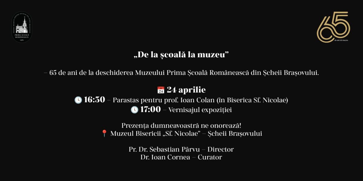 De la ora 17:00, publicul este invitat la vernisajul expoziției aniversare, găzduită de Muzeul Bisericii Sfântul Nicolae, un spațiu emblematic pentru cultura românească, ce păstrează mărturii esențiale despre începuturile învățământului în limba română.