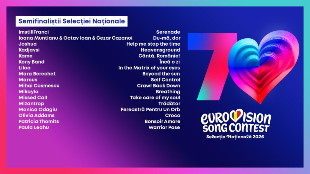 Eurovision România și-a ales semifinaliștii: 68 de piese intră în Atelierul deschis Eurovision 2026. Luni, 9 februarie, TVR dă start etapei de audiții ale semifinaliștilor, în Studioul 3.