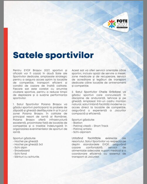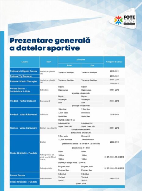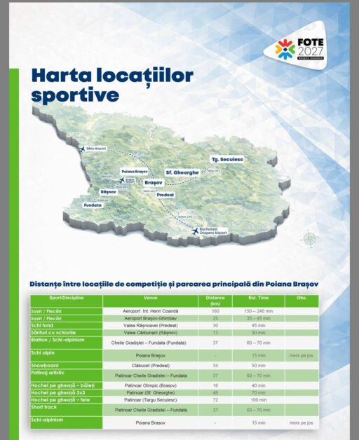 Brașovul este gazda oficială a acestei competiții, iar satul olimpic va fi amenajat în Poiana Brașov.