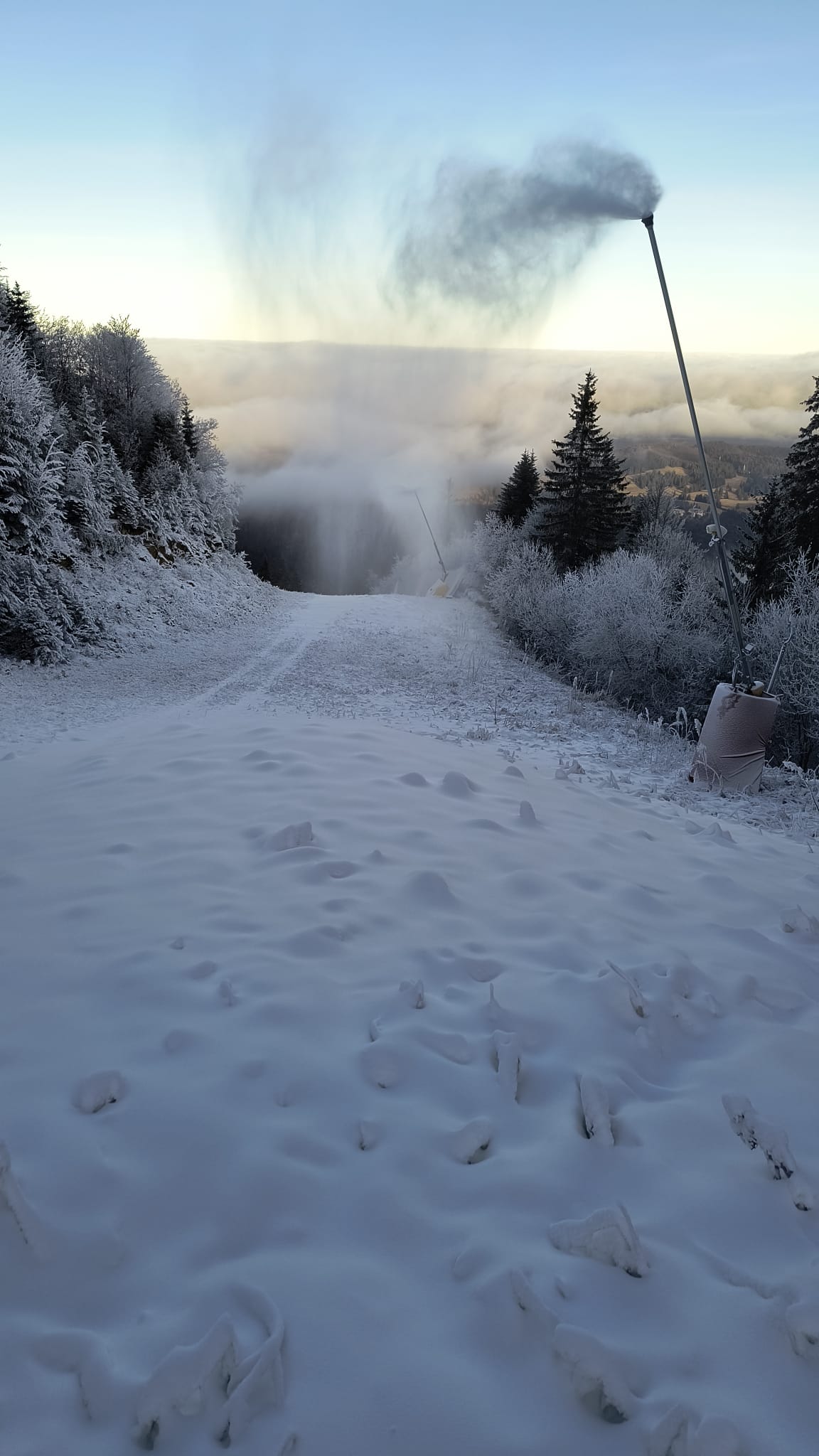 De ieri, începând cu ora 15:00, instalațiile de producere a zăpezii artificiale funcționează fără întrerupere, pentru a asigura acumularea necesară de zăpadă pe pârtii. În prezent, se realizează depozite de zăpadă pe pârtiile Lupului Superior, Doamnei, Kanzel și Ruia.