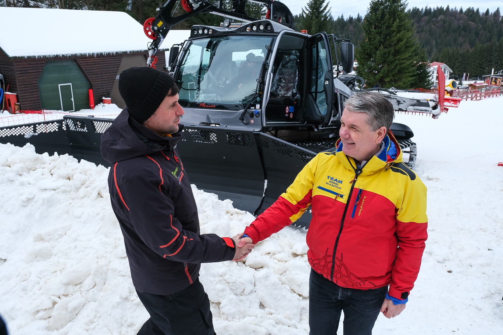 ,,Nici nu știți câte eforturi se fac pentru pregătirea pârtiilor din Poiana Brașov! Brașovul trăiește și din turism. Pentru acest lucru trebuie să facem investiții și eforturi pentru întreținerea și dezvoltarea infrastructurii în acest domeniu, pentru că suntem într-o competiție și cu alții, dar și cu condițiile meteo, astfel că trebuie să maximizăm ce putem face pentru a oferi o experiență de neuitat celor care aleg să schieze în Poiana Brașov. În contextul actual, situația este destul de complicată, însă trebuie să găsim soluții în așa fel încât să ne asigurăm că cei care utilizează domeniul schiabil – și vedeți că sunt și copii mici, și adolescenți, și adulți, și oameni mai în vârstă, și din Brașov, și din afara orașului, din alte zone din țară sau din alte țări – schiază în condiții bune și de siguranță, pentru că dacă avem și turiști, înseamnă că facem și venituri. Avem cel mai ofertant domeniu schiabil din România și trebuie să fim competitivi. Ca să fii competitiv, trebuie să ai și dotările necesare, în așa fel încât să reziști într-o competiție, pentru că s-au dezvoltat și alte domenii schiabile în România. Până la urmă oamenii aleg unde este mai bine, unde sunt îndeplinite condiții și unde sunt și servicii de calitate, iar oamenii care lucrează la întreținerea domeniului schiabil trebuie să aibă și echipamentele necesare și de specialitate ca să facă o treabă bună”, a declarat primarul George Scripcaru.