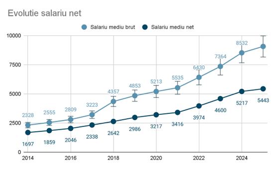 „Potrivit datelor INS, salariul mediu net în România a crescut 4,1% în luna septembrie 2025 față de perioada similară a anului trecut și cu 1% mai mult față de luna august. Dacă ne raportăm la august 2015, majorarea a fost de peste 254%, o creștere impresionantă, atât în termeni nominali, cât și reali. Cu toate acestea, deși creșterea, atât în termeni nominali, cât și în termeni reali, a fost impresionantă în ultimii ani, România rămâne la coada țărilor europene atunci când vine vorba de salariul pe oră.