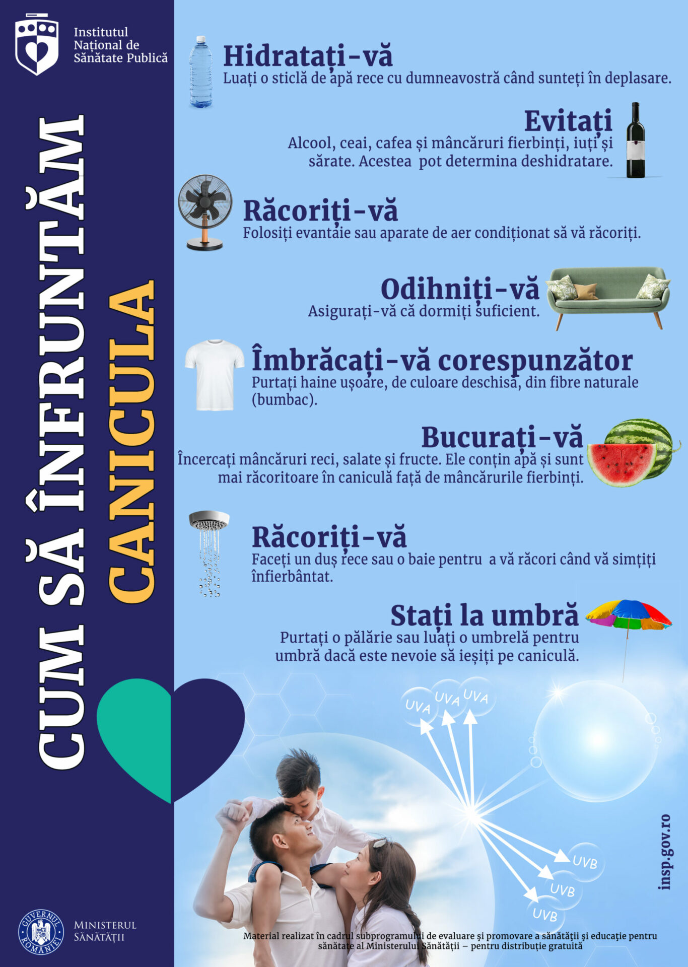 - Rămâneți informați cu avertismentele oficiale privind perioadele de caniculă;