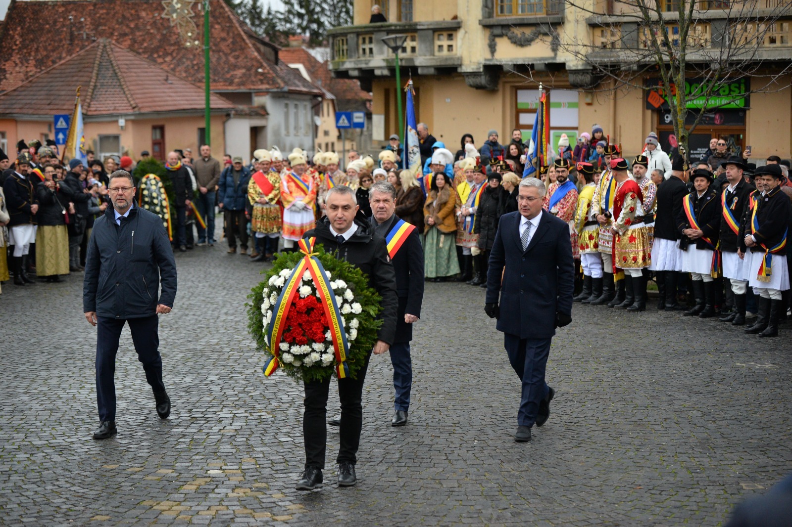 „Ziua Națională este cea mai importantă zi a poporului român. Atunci când s-a făcut Marea Unire, la Alba Iulia, de la Brașov au fost junii care ne-au reprezentat și atunci, și, iată, ne reprezintă și acum. Să ne bucurăm pentru astăzi, să ne bucurăm împreună. La mulți ani, România! La mulți ani, români! La mulți ani, Brașov!“, a transmis primarul George Scripcaru astăzi, din Piața Unirii.