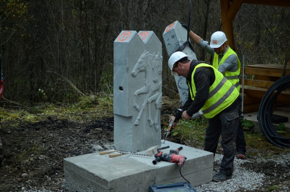 Una dintre bornele de andezit care vor marca traseul va fi instalată în Piața Sfatului. „Via Transilvanica“ este deja comparată cu trasee mondiale de drumeție, cum ar fi El Camino sau Appalachian Trail.