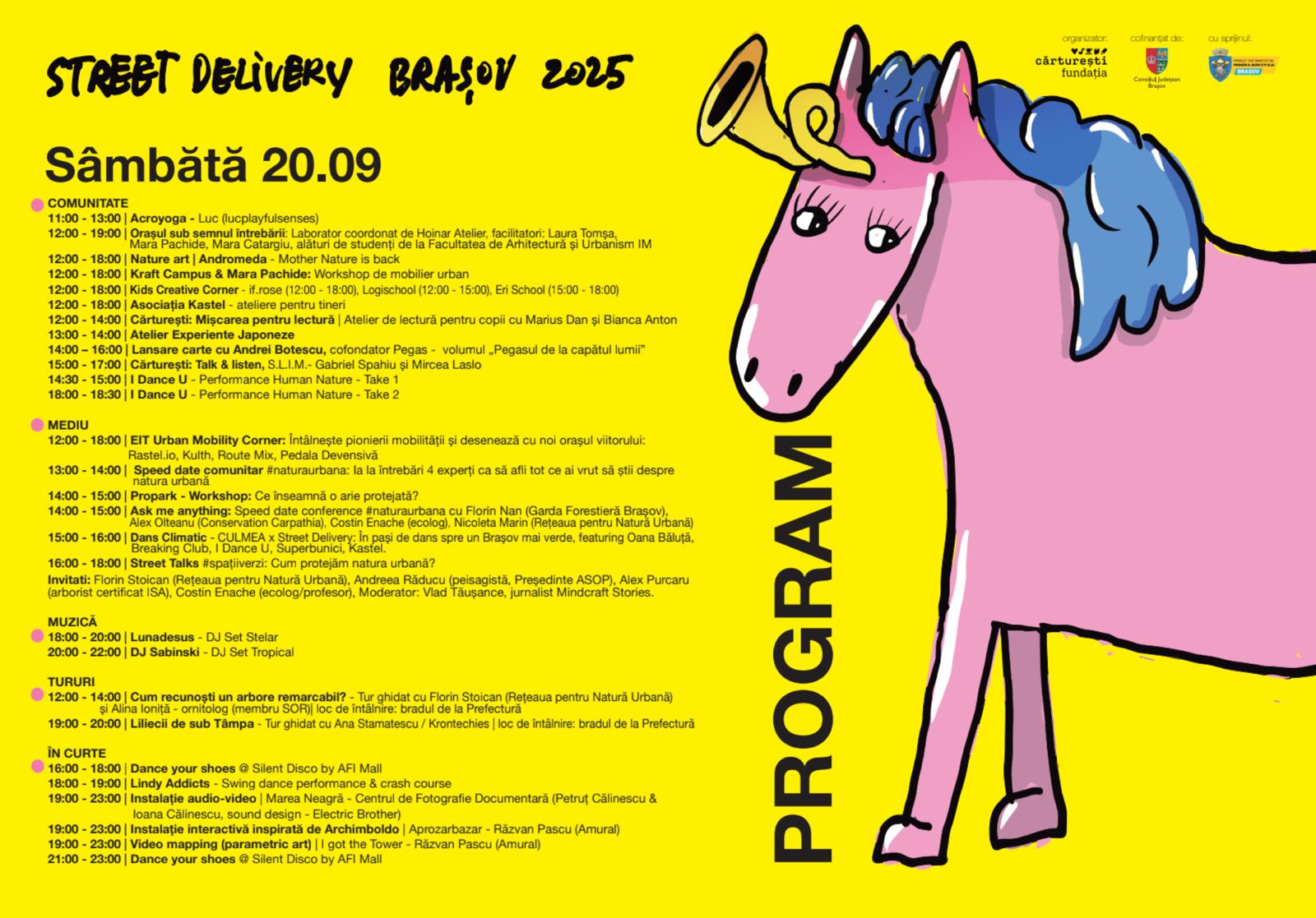 Sub deviza „Închidem strada pentru mașini și o deschidem pentru oameni”, Street Delivery Brașov ajunge în acest an la ediția a cincea și propune publicului un nou spațiu de întâlnire, în parteneriat cu Universitatea Transilvania din Brașov. În premieră, pe lângă tronsonul dintre Modarom și Magazinul Star, festivalul accesează Curtea Corpului N al Universității Transilvania Brașov (Facultatea de Inginerie Mecanică), un spațiu academic transformat din parcare într-o zonă de relaxare pentru studenți, acum deschis pentru prima dată publicului larg. Acesta va fi pus în valoare prin instalații new media, video mapping, și performance-uri literare.