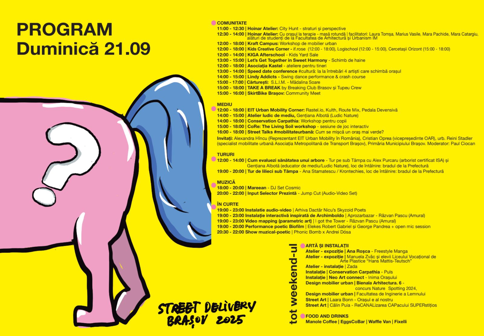 Festivalul reunește inițiative civice, concepte urbane creative și artă stradală performativă, transformând orașul într-un laborator viu în care testăm împreună cum ar putea arăta orașele viitorului, create de oameni, față în față. În perioada 20-21 septembrie 2025, organizatorii invită comunitatea să răspundă la întrebarea: mai poate o stradă pietonalizată temporar să găzduiască întrebări incomode? Este strada locul unde putem discuta deschis despre mobilitate urbană, spații verzi, artă și incluziune socială?