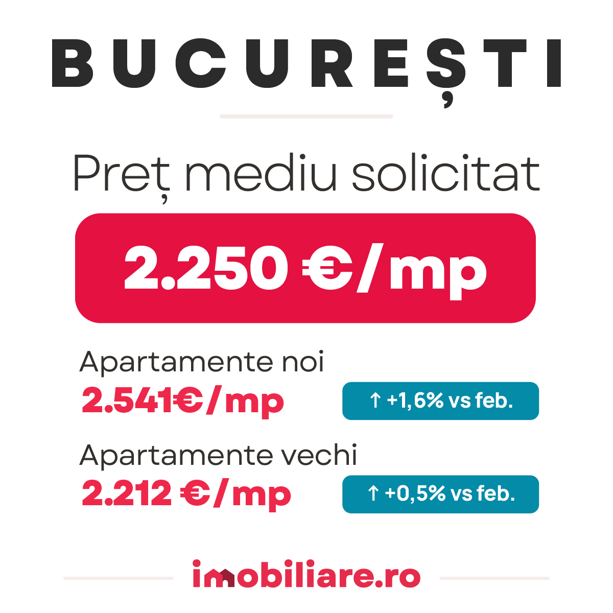 Această creștere a prețurilor o depășește cu mult pe cea observată local în perioada similară anterioară. În martie 2025, cumpărătorii găseau apartamente noi la vânzare în București cu un preț mediu cu 16% mai mare decât în martie 2024, potrivit Indicelui Imobiliare.ro, instrument care monitorizează de peste 15 ani evoluția pieței rezidențiale din principalele centre urbane prin intermediul celei mai extinse baze de date din țară.