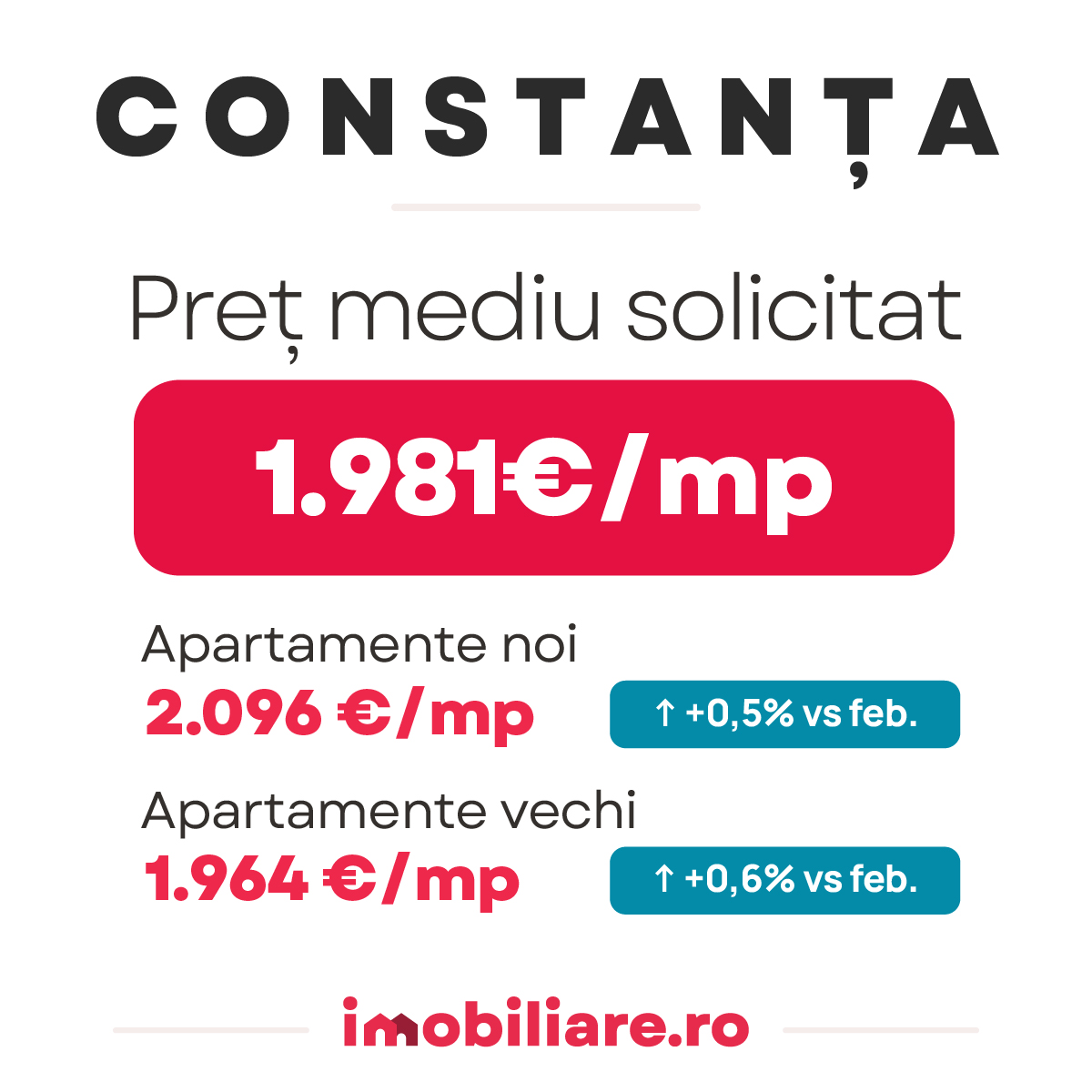 Prețul mediu solicitat pentru locuințele vechi din Constanța a ajuns la 1.964 euro/mp util până la finele lunii trecute. Proprietarii au scumpit apartamentele mai mult decât dezvoltatorii, mai exact cu circa 11% în 12 luni, acesta fiind al doilea cel mai mare avans înregistrat pe acest segment de piață în rândul orașelor monitorizate de Indicele Imobiliare.ro. Majorările țin aproape în totalitate pasul și cu ritmul de creștere înregistrat în intervalul martie 2025-martie 2024.