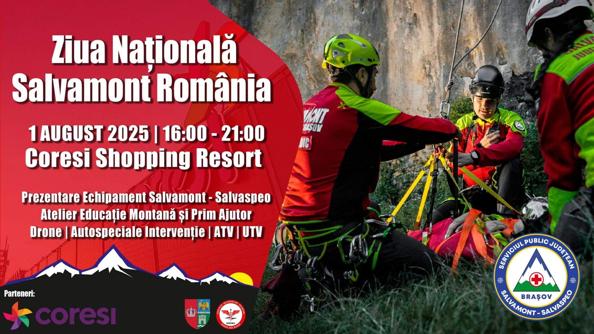Evenimentul, organizat de Serviciul Public Județean Salvamont Brașov, în parteneriat cu ASV România – Asociația Salvatorilor Voluntari din România, Consiliul Județean Brașov și Coresi Shopping Resort, promite o după-amiază plină de acțiune, demonstrații spectaculoase și activități educative pentru întreaga familie.