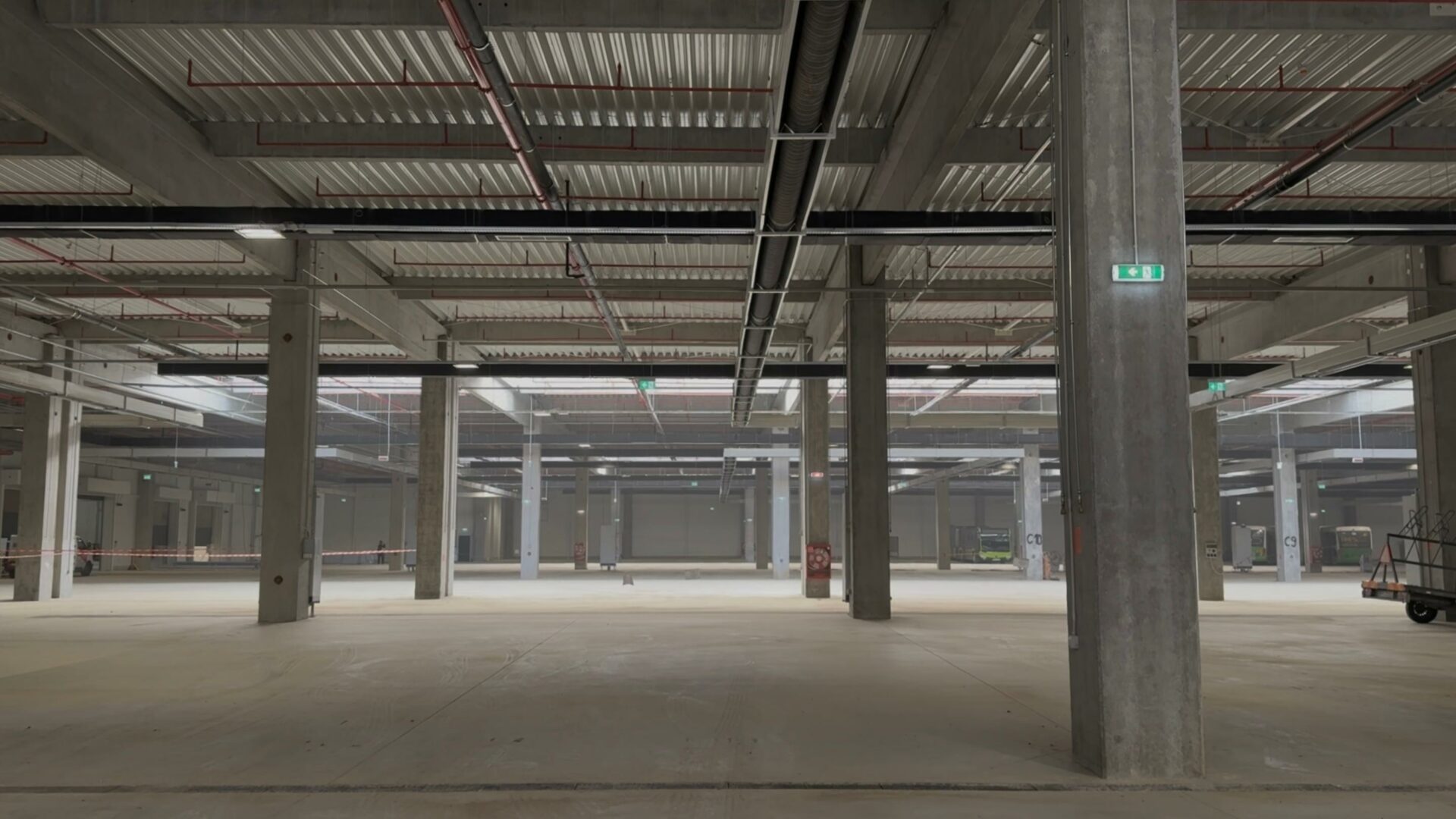 – Construcție garaj: clădirea garajului este o clădire cu specific industrial, fără personal permanent, destinată garării autobuzelor. Conform prevederilor legale, structura de rezistență a acestui obiect nu poate fi din metal (așa cum era prevăzut în studiul de fezabilitate), motiv pentru care s-a ales varianta structurii din cadre prefabricate din beton armat și beton precomprimat. Suprafața construcției: 24.154 m.p.;