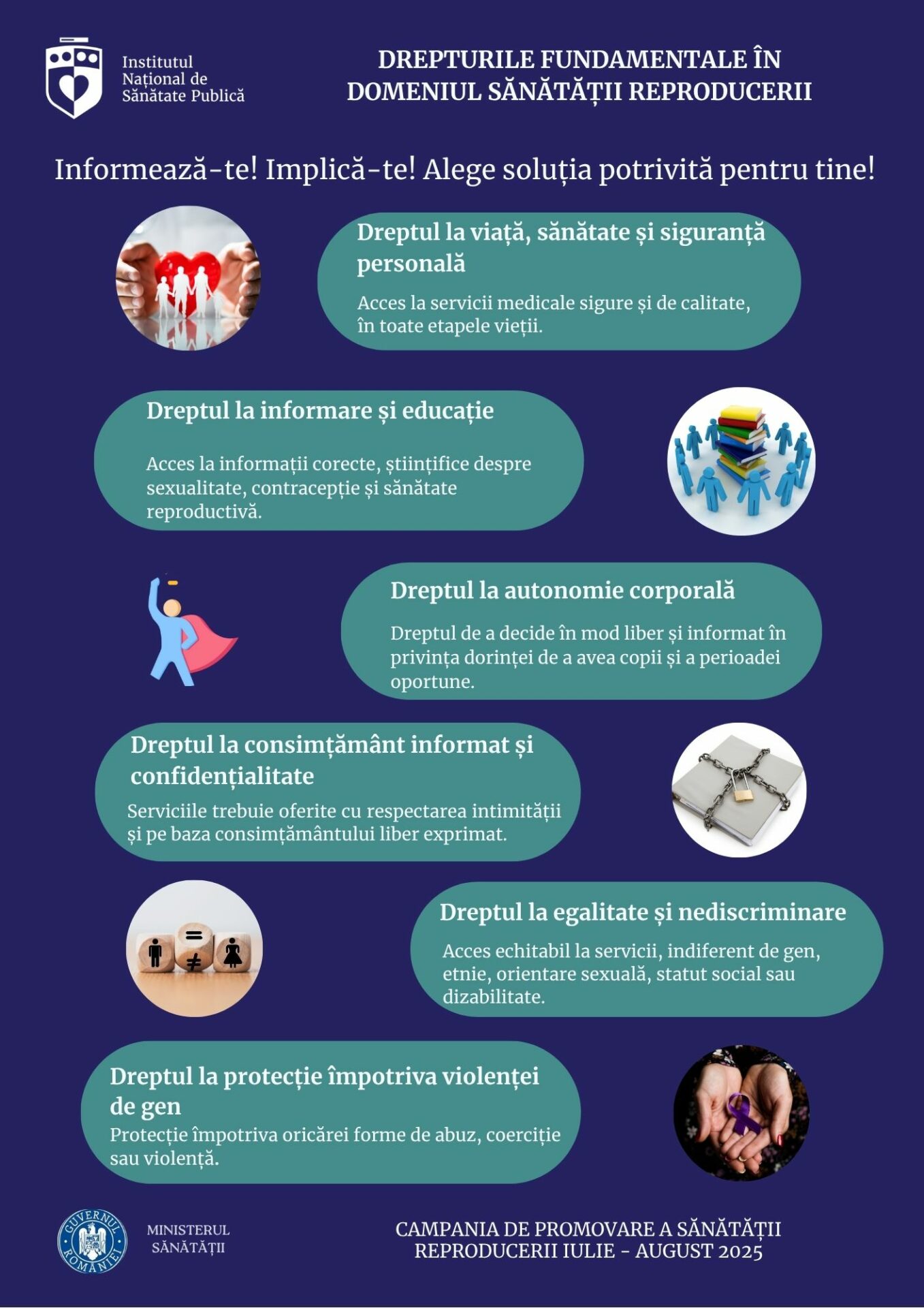 În perioada iulie – august 2025 Institutul Național de Sănătate Publică și Direcțiile Județene de Sănătate Publică și a Municipiului București derulează campania de informare, educare și conștientizare dedicată sănătăţii reproducerii.
