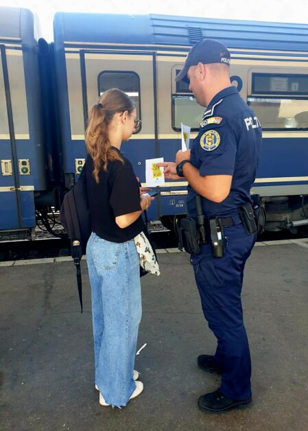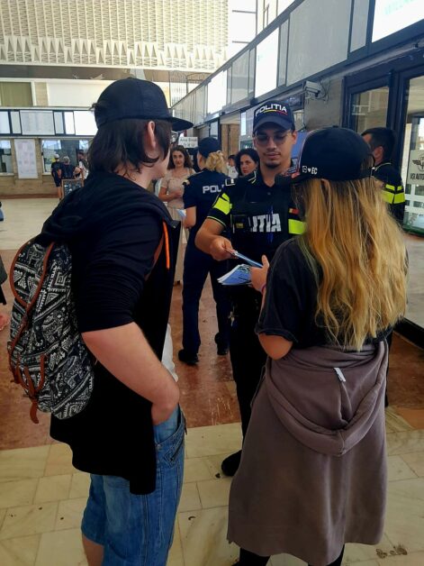 Pe lângă discuții, polițiștii au distribuit materiale informative – pliante și flyere cu sfaturi preventive – iar călătorii au primit broșuri tematice despre prevenirea furturilor din locuințe pe perioada vacanței și reducerea riscului de a deveni victime ale tâlhăriilor sau furturilor din buzunare și bagaje.