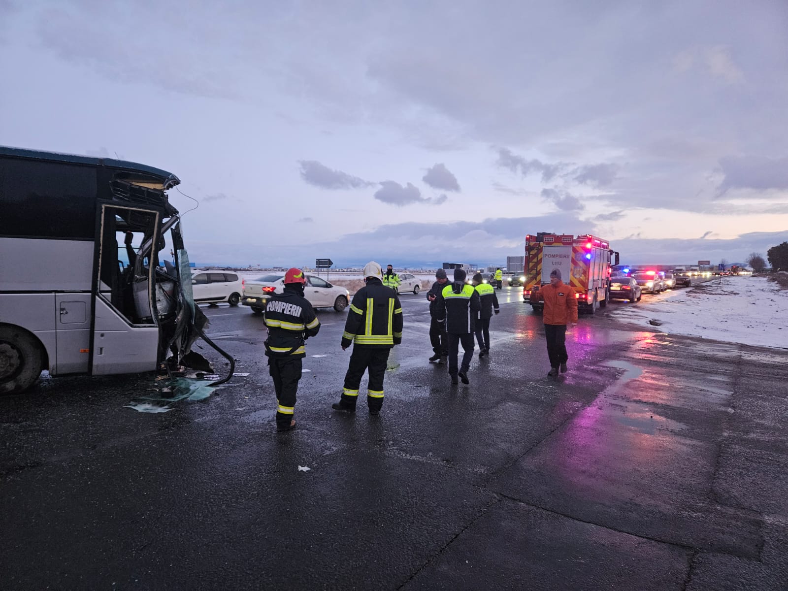 „Accident rutier pe DN 3, în apropiere de ieșirea pe A4. Intervin Detașamentul Palas cu o autospecială de stingere incendii, un echipaj SMURD B și patru ambulanțe de la Serviciul de Ambulanță Județean. La locul intervenției au fost găsite nouă autoturisme implicate în accidentul rutier cu 13 persoane implicate. Până la sosirea forțelor de intervenție au mai fost implicate încă cinci autoturisme”, a transmis ISU Dobrogea.