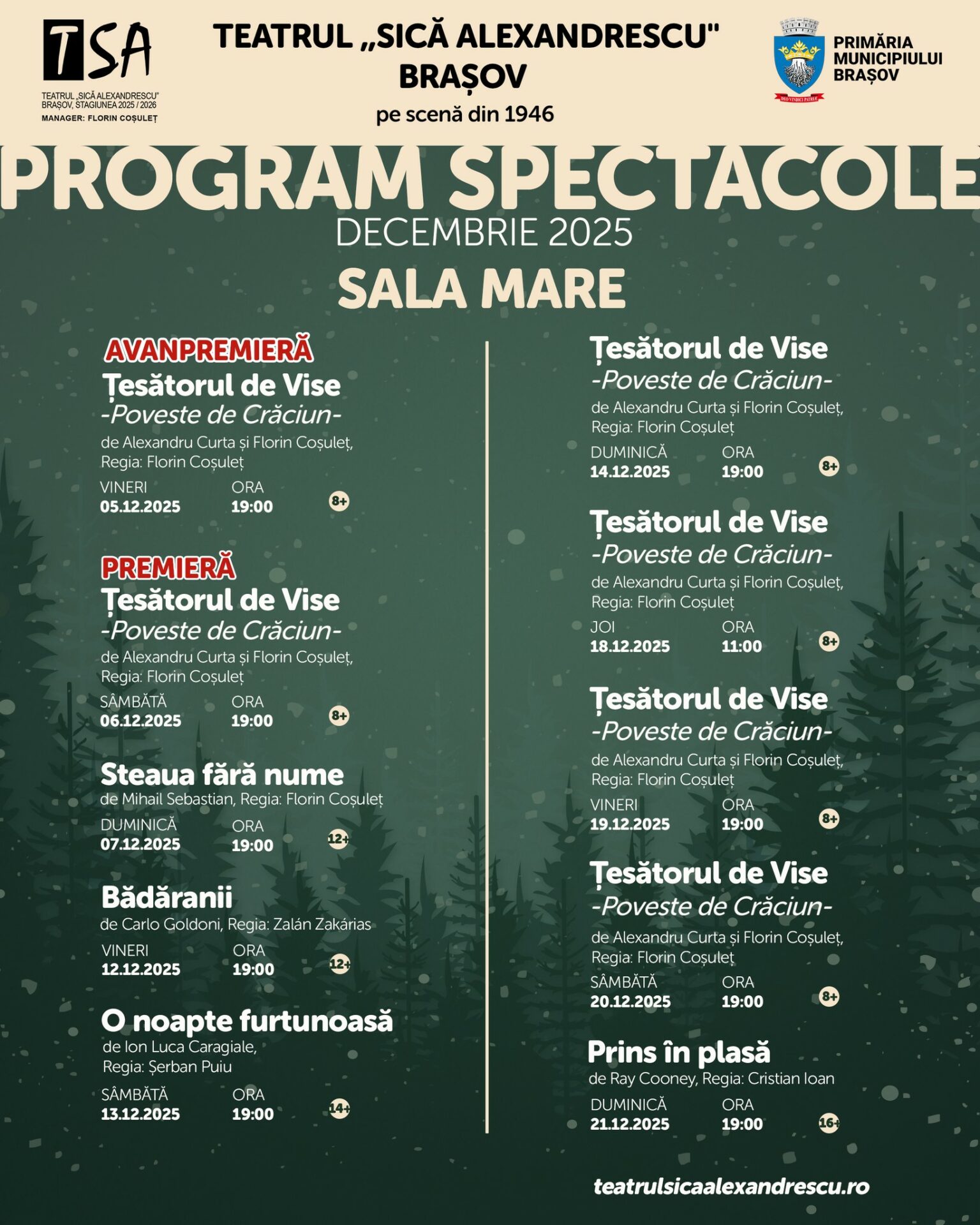 Iarna vine la noi cu o PREMIERĂ: 𝐓̦𝐄𝐒𝐀̆𝐓𝐎𝐑𝐔𝐋 𝐃𝐄 𝐕𝐈𝐒𝐄 -𝐏𝐨𝐯𝐞𝐬𝐭𝐞 𝐝𝐞 𝐂𝐫𝐚̆𝐜𝐢𝐮𝐧-! Un spectacol destinat întregii familii, plin de emoție, colind și bucurie! Biletele se pot achiziționa de la casieria teatrului sau online de pe aici.