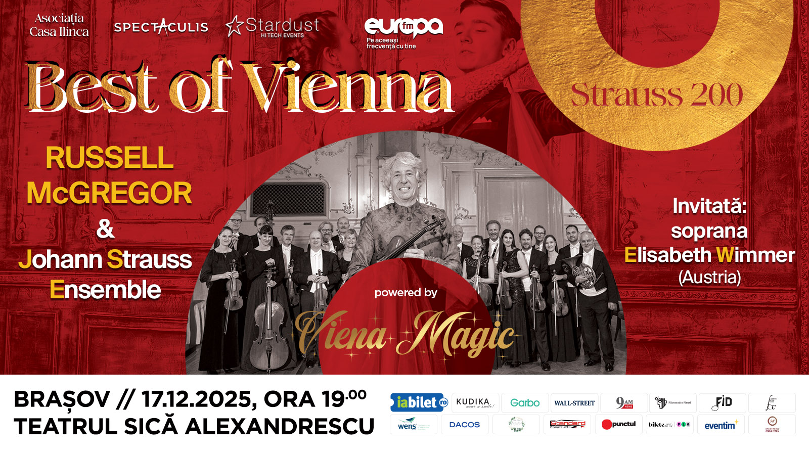 A devenit deja o tradiție pentru melomanii din România să celebreze sărbătorile de iarnă pe ritmurile fermecătoare ale muzicii clasice vieneze. Și anul acesta, îndrăgita orchestră Johann Strauss Ensemble, condusă de carismaticul dirijor Russell McGregor, revine în țara noastră pentru un spectacol extraordinar. Concertul „Best of Vienna” va avea loc pe 17 decembrie, ora 19:00, […]
