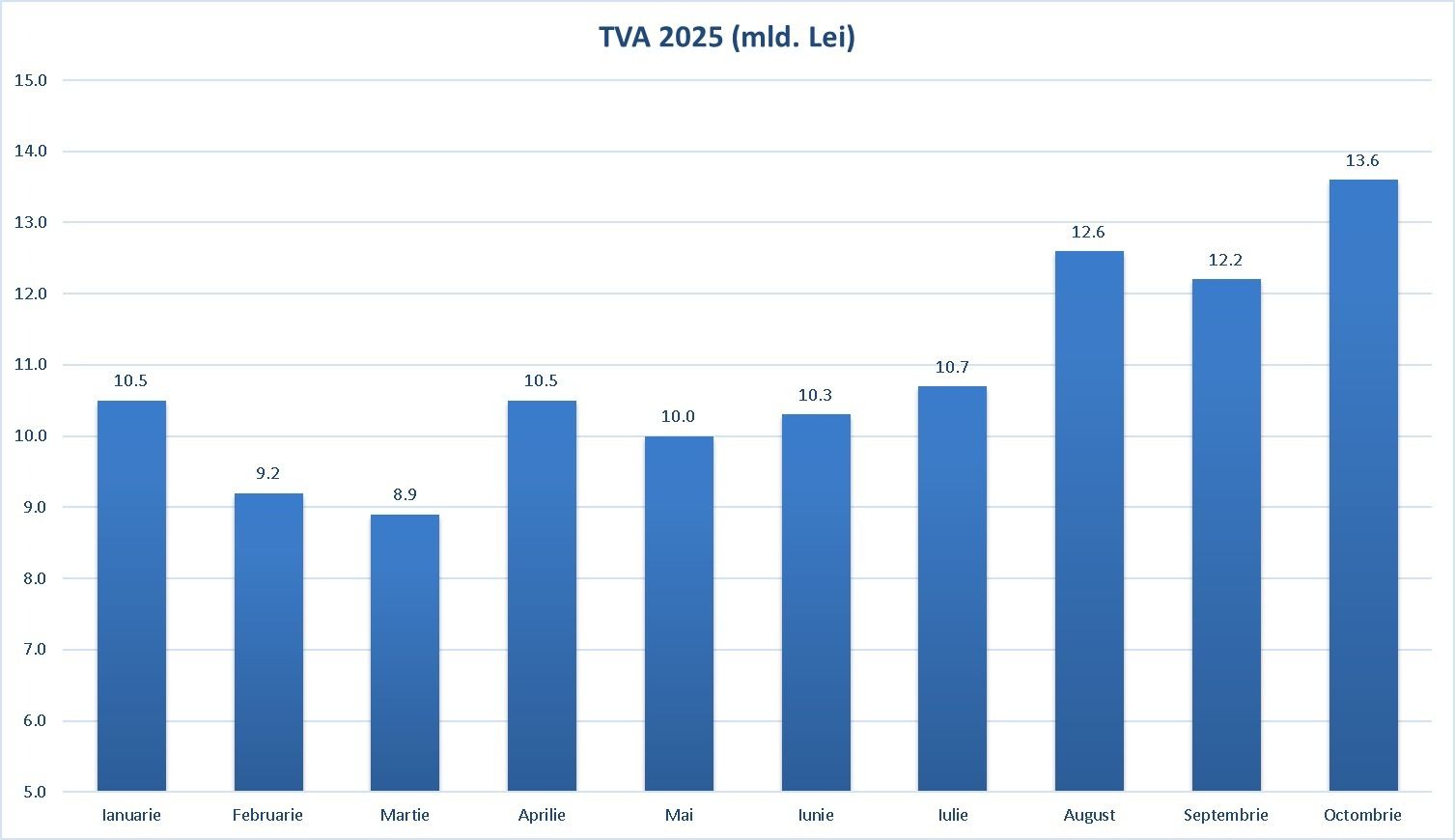 Execuția bugetară pe primele 10 luni ale anului: deficitul scade, încasările din TVA cresc constant. Deficitul bugetar este în octombrie de 5,72%, față 6,22% în aceeași perioadă a anului trecut. Scăderea cu 0,5% reprezintă jumătate de miliard de lei. Veniturile bugetului general au însumat 531,55 mld lei în primele zece luni ale anului 2025, în […]