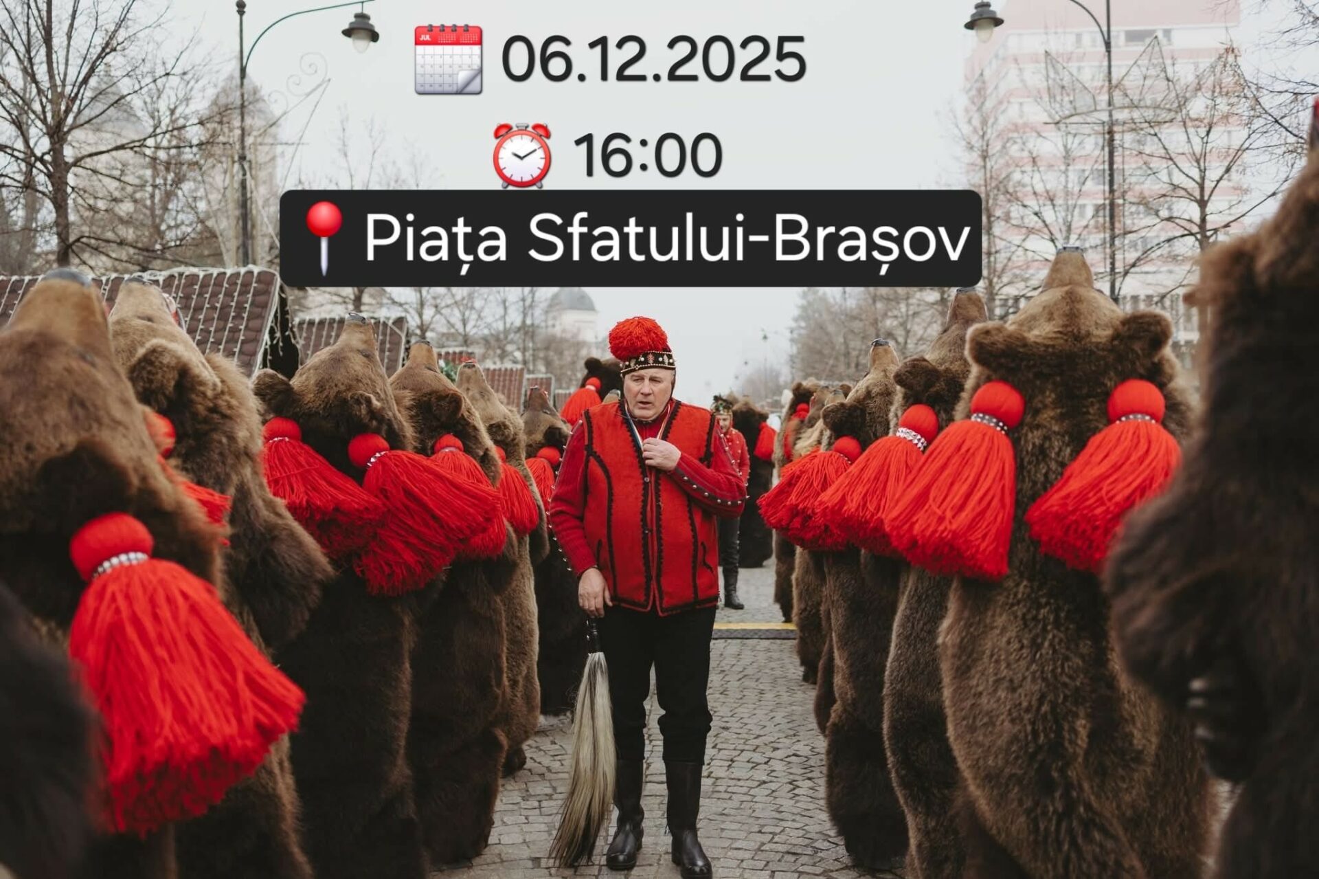 Tradiția Jocului Ursului din Moldova ajunge la Brașov sâmbătă, 6 decembrie, în Piața Sfatului, începând cu ora 16:00. Evenimentul este iniţiat de Centrul Cultural Reduta și promite un spectacol autentic de iarnă, cu tobe, clopoței și costume impresionante. Jocul Ursului de pe Valea Trotușului este o datină veche de secole, care face parte din Patrimoniul Mondial […]
