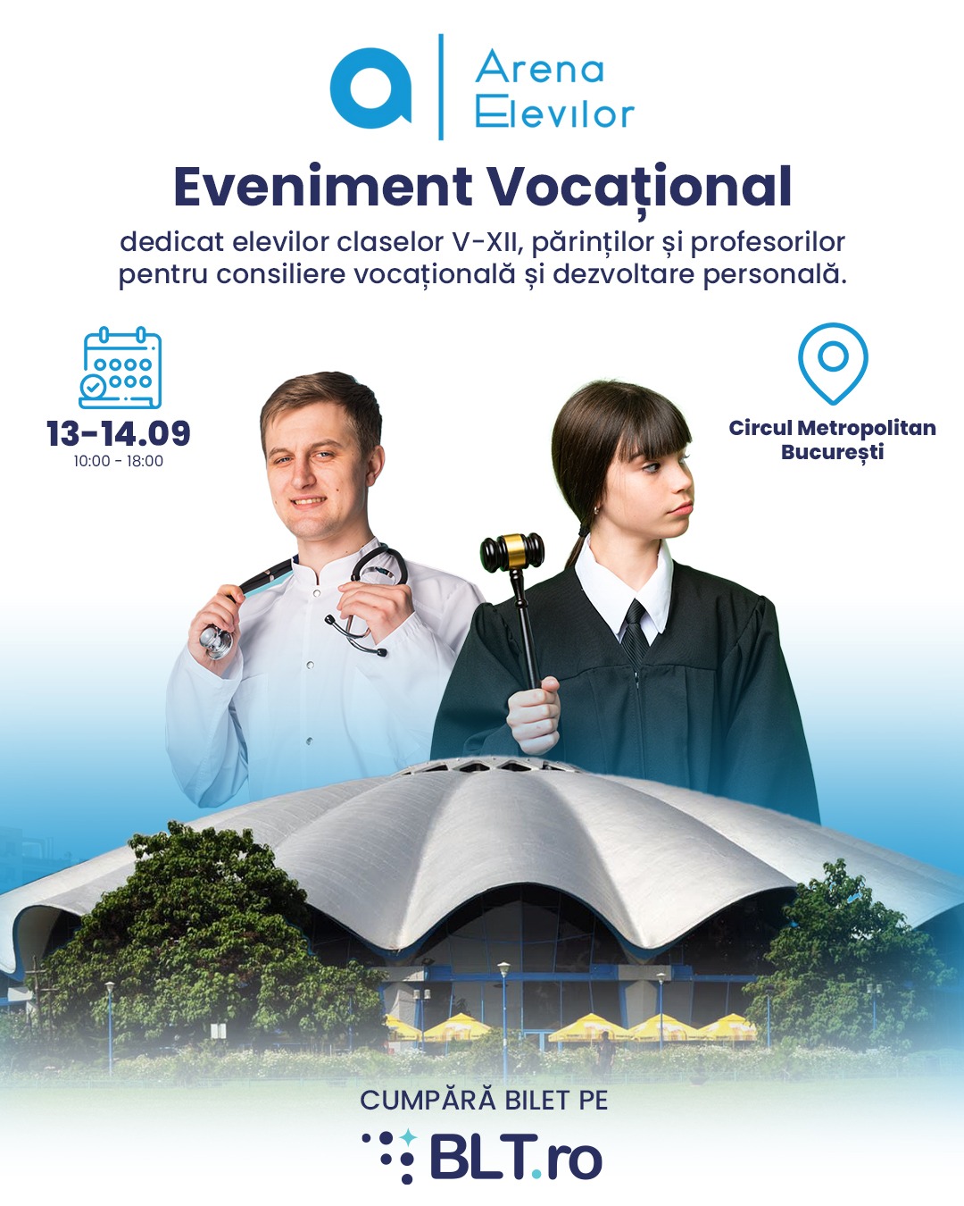 Unde se întâlnesc visurile, vocația și energia unei întregi generații? La Arena Elevilor 2025, acolo unde ideile prind glas, iar elevii prind curaj. Cel mai amplu eveniment vocațional din Europa dedicat elevilor, părinților și cadrelor didactice revine în forță, într-un spațiu spectaculos: Circul Metropolitan București, pe 13 și 14 septembrie 2025.