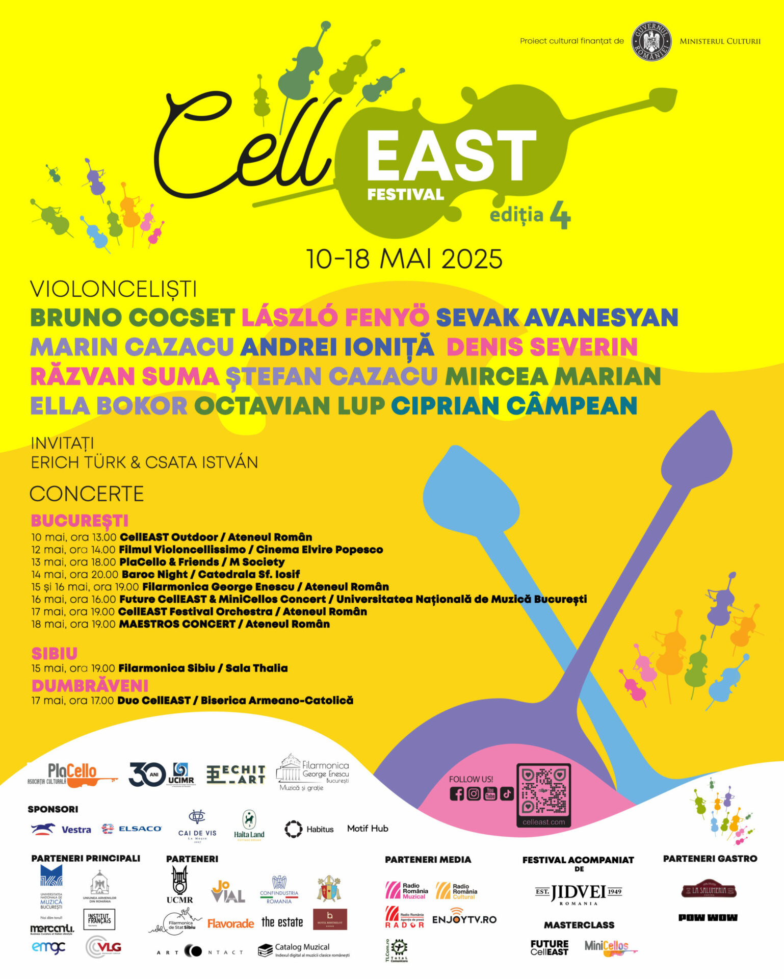 În perioada 10–18 mai 2025, CellEAST Festival revine cu cea de-a IV-a ediție, fiind UNICUL FESTIVAL INTERNATIONAL DIN ROMÂNIA DEDICAT EXCLUSIV VIOLONCELULUI.