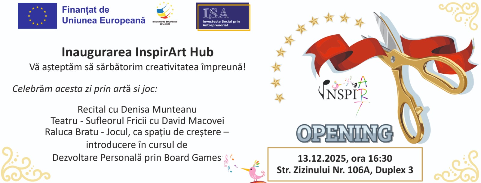 Centrul Educațional Inspirart își anunță deschiderea oficială și invită comunitatea brașoveană la un eveniment special ce va avea loc sâmbătă, 13 decembrie, de la ora 16:30, la sediul din Strada Zizinului nr. 106A, Duplex 3.