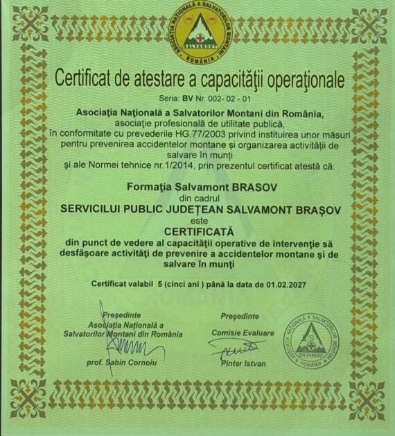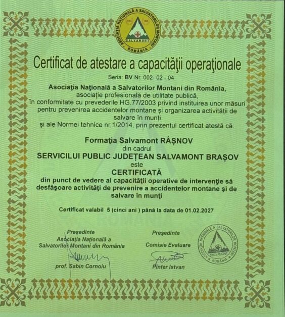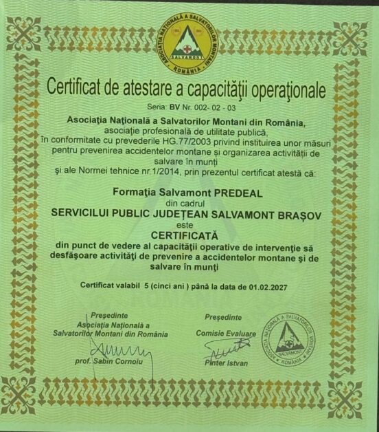Obținerea acestor acreditări reconfirmă angajamentul constant al SPJ Salvamont – Salvaspeo Brașov pentru profesionalism, promptitudine și pentru siguranța celor care aleg să exploreze zonele montane ale județului.