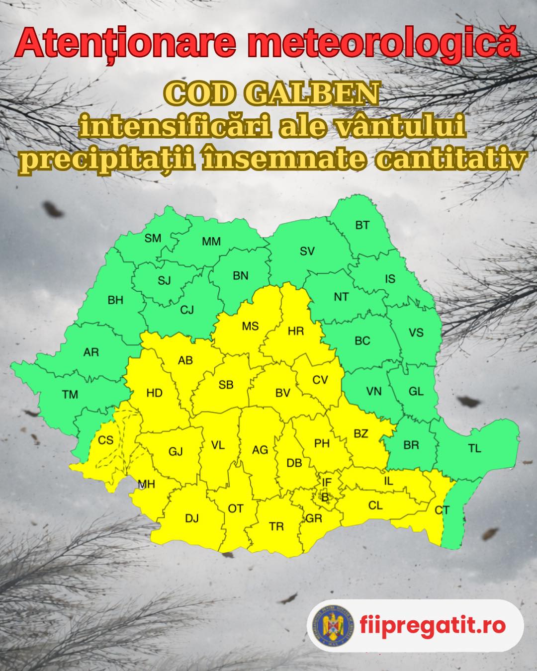 Pentru informații suplimentare privind modul de comportare în situații de urgență, accesați platforma națională de pregătire a populației https://fiipregatit.ro și descărcați aplicația DSU, disponibilă gratuit în App Store și Google Play.