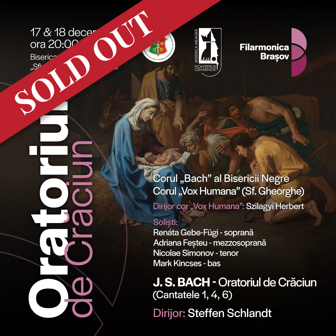Filarmonica Brașov anunță că toate biletele pentru concertele de Crăciun din această săptămână au fost epuizate, evenimentele bucurându-se de un interes deosebit din partea publicului. Concertele vor avea loc miercuri, 17 decembrie, și joi, 18 decembrie 2025, de la ora 20.00, la Biserica Catolică „Sfinții Apostoli Petru și Paul” din Brașov.