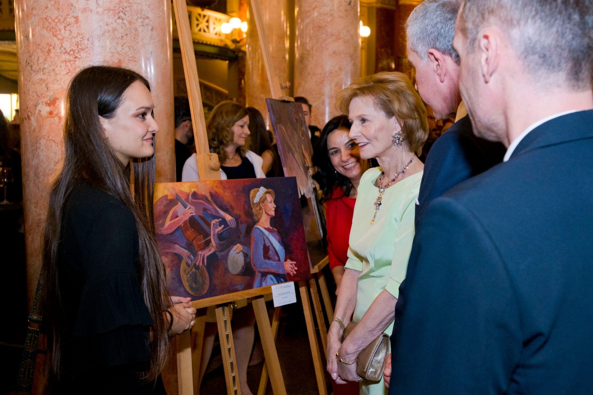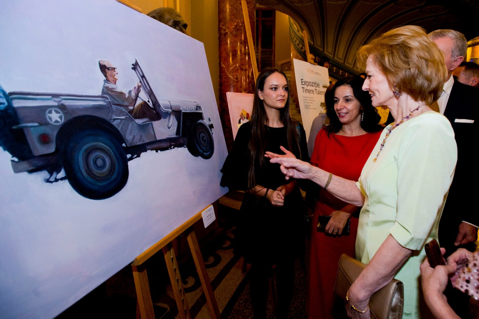 În rotonda Ateneului, invitații au admirat expoziția de arte vizuale a bursierilor Tinere Talente, cu tema ,,Preocupări și pasiuni ale membrilor Familiei Regale de-a lungul timpului”, iar la final au celebrat arta și generozitatea în cadrul unui cocktail festiv oferit de sponsorii noștri.