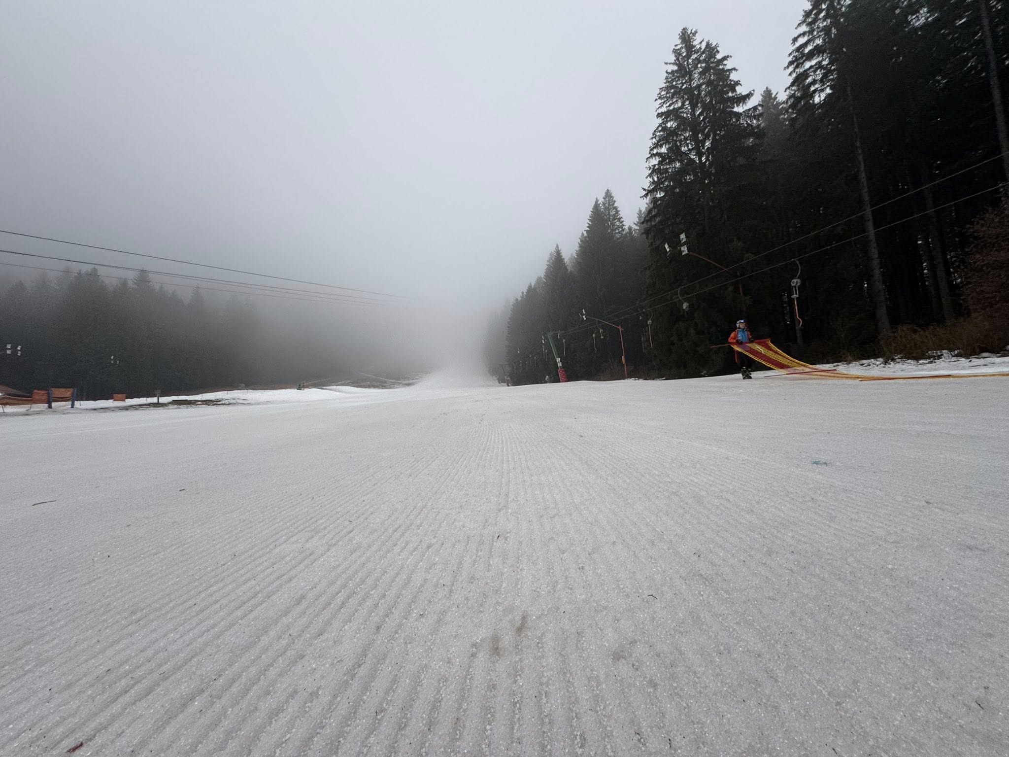 Pe masiv, ceața este densă, iar stratul de zăpadă, specific finalului de sezon, este înghețat dimineața, motiv pentru care schiorii sunt sfătuiți să schieze cu prudență sporită.